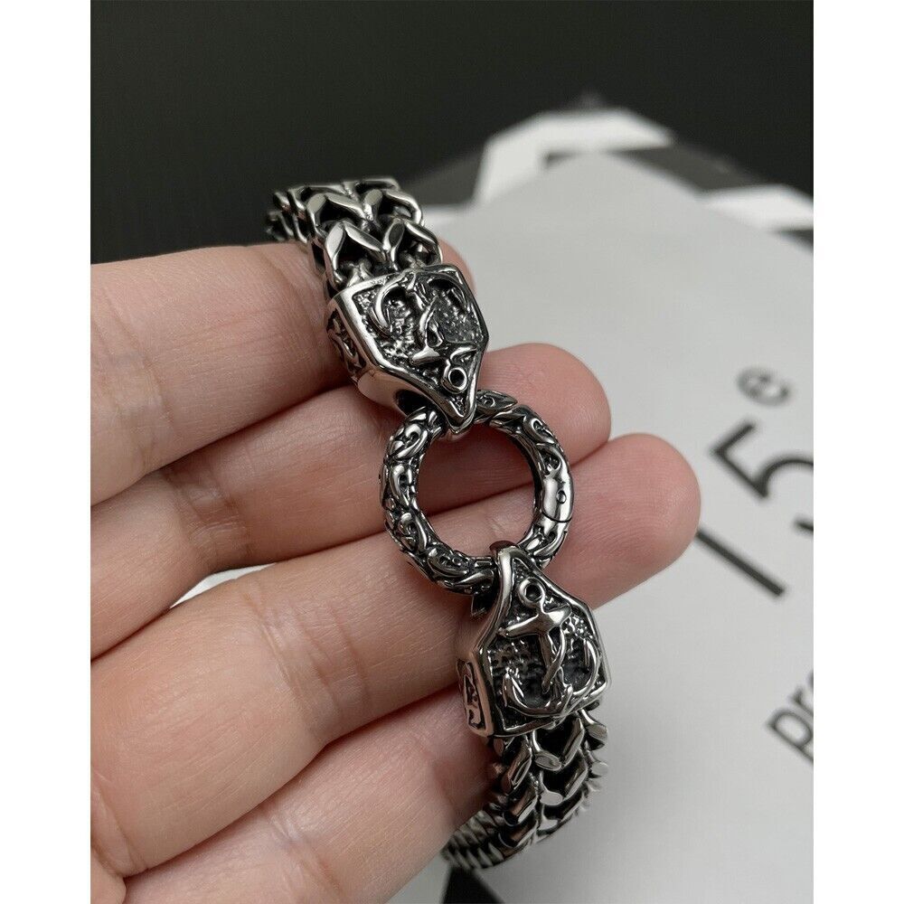 12mm Men's Hiphop 20cm Snake Chain Stainless Steel Anchor Link Bracelet Chain