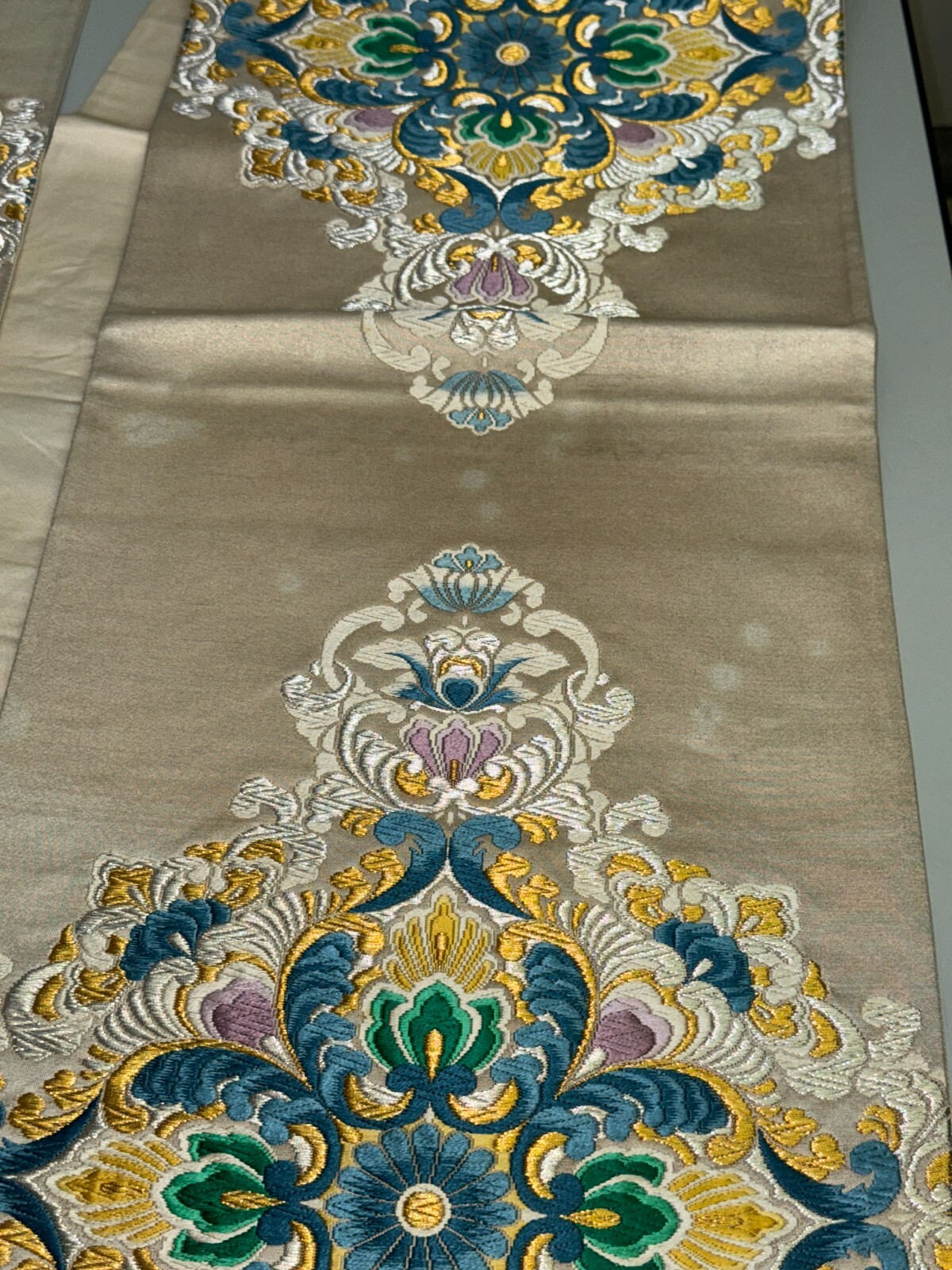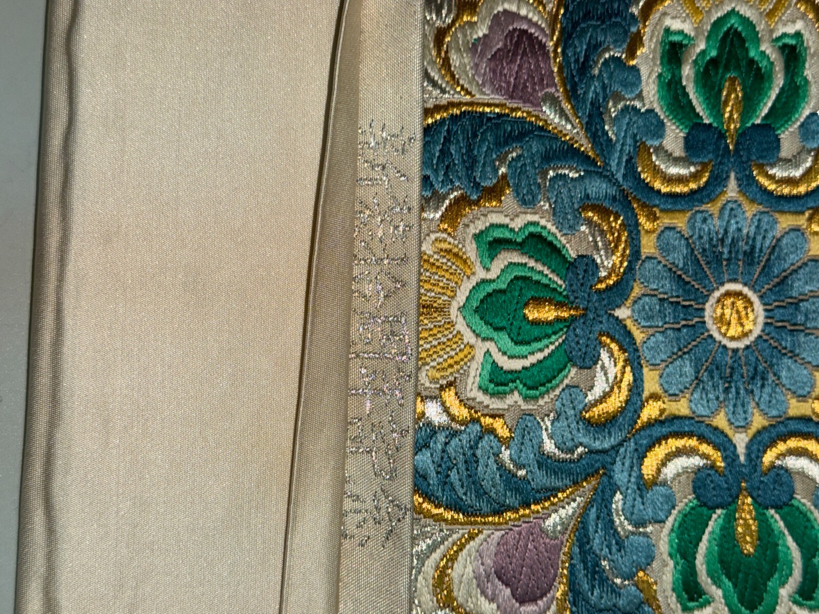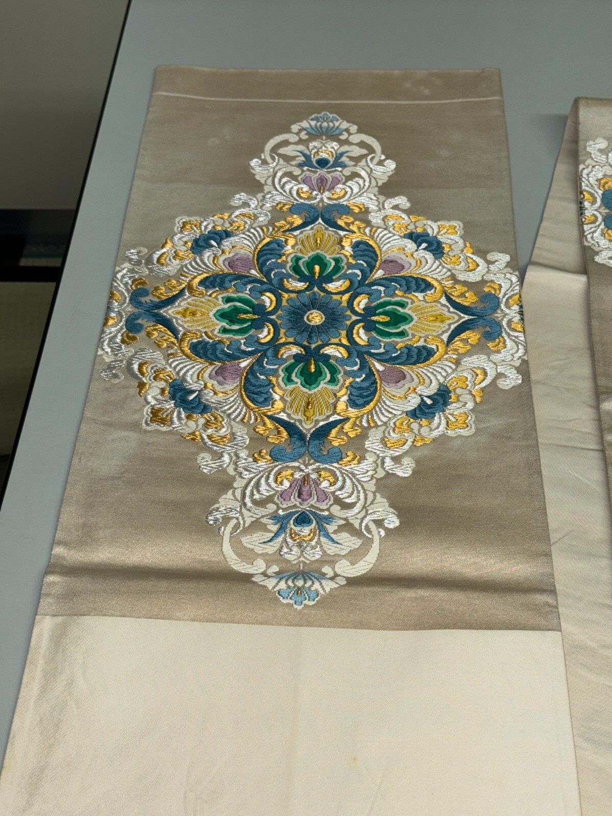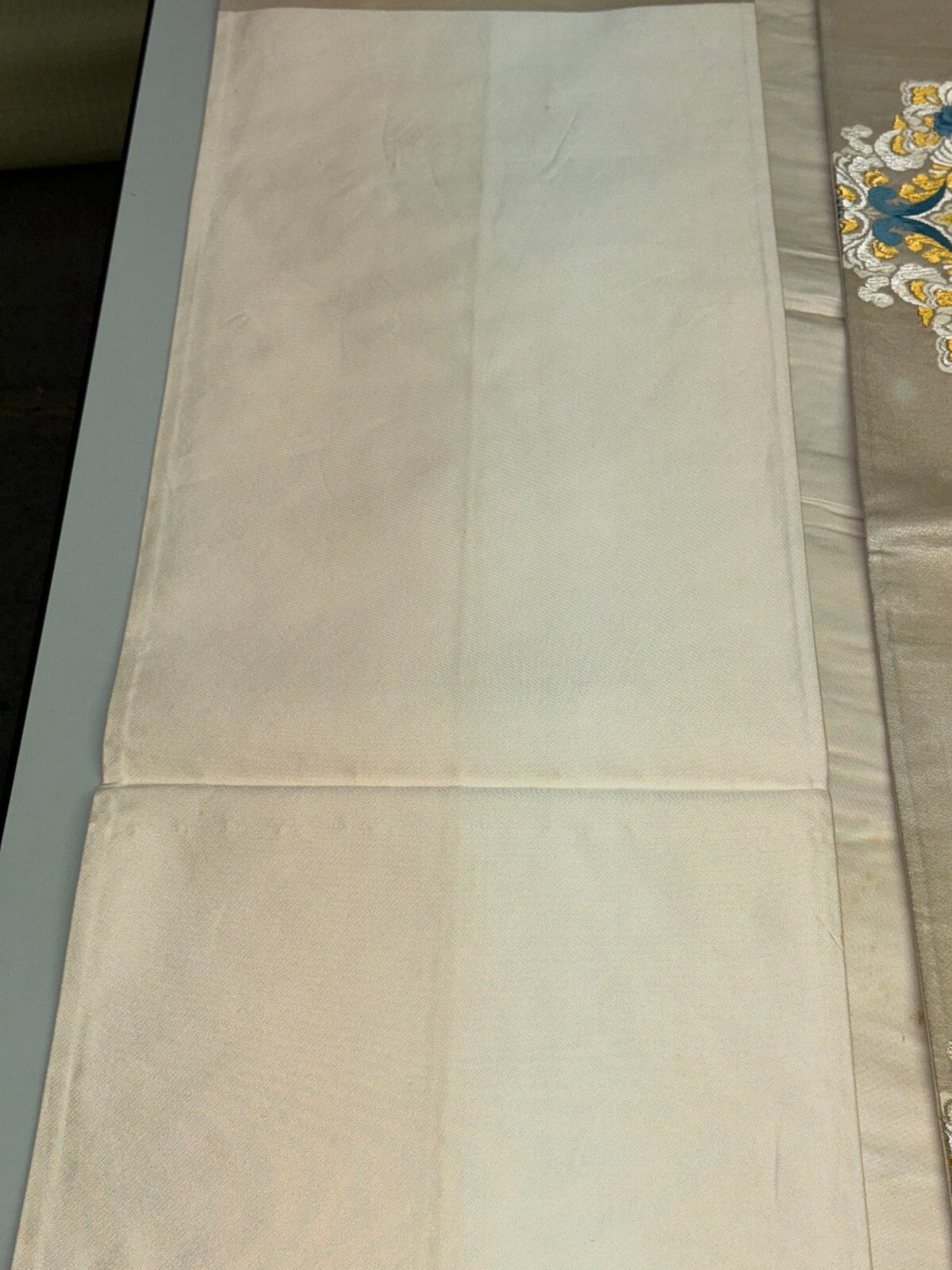как выглядит Japanese Vintage Kimono Fukuro Obi silk White Embroidery Expensive Dirt 170x12in фото