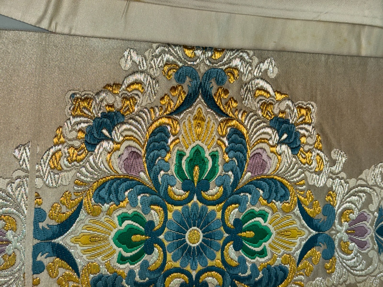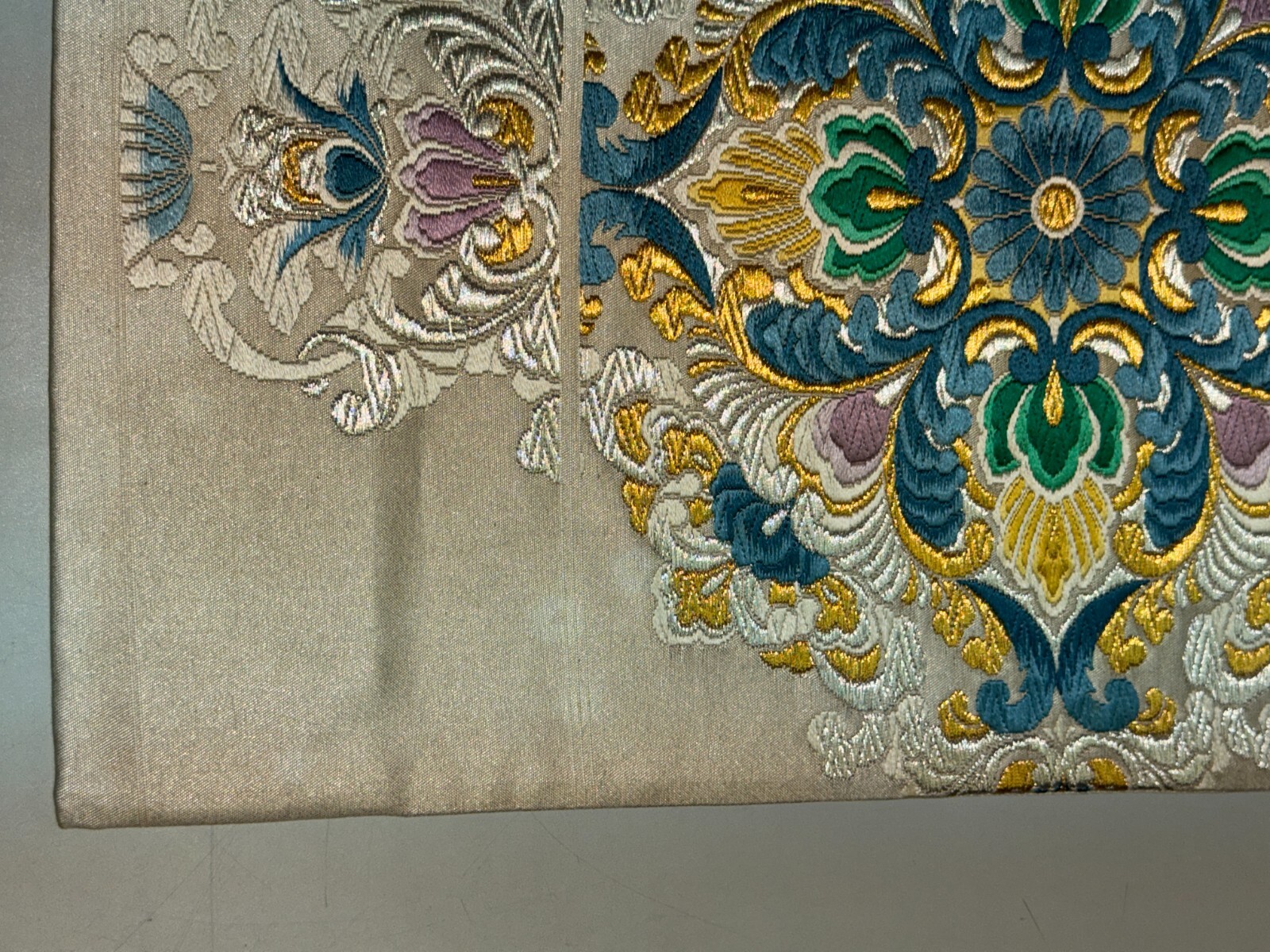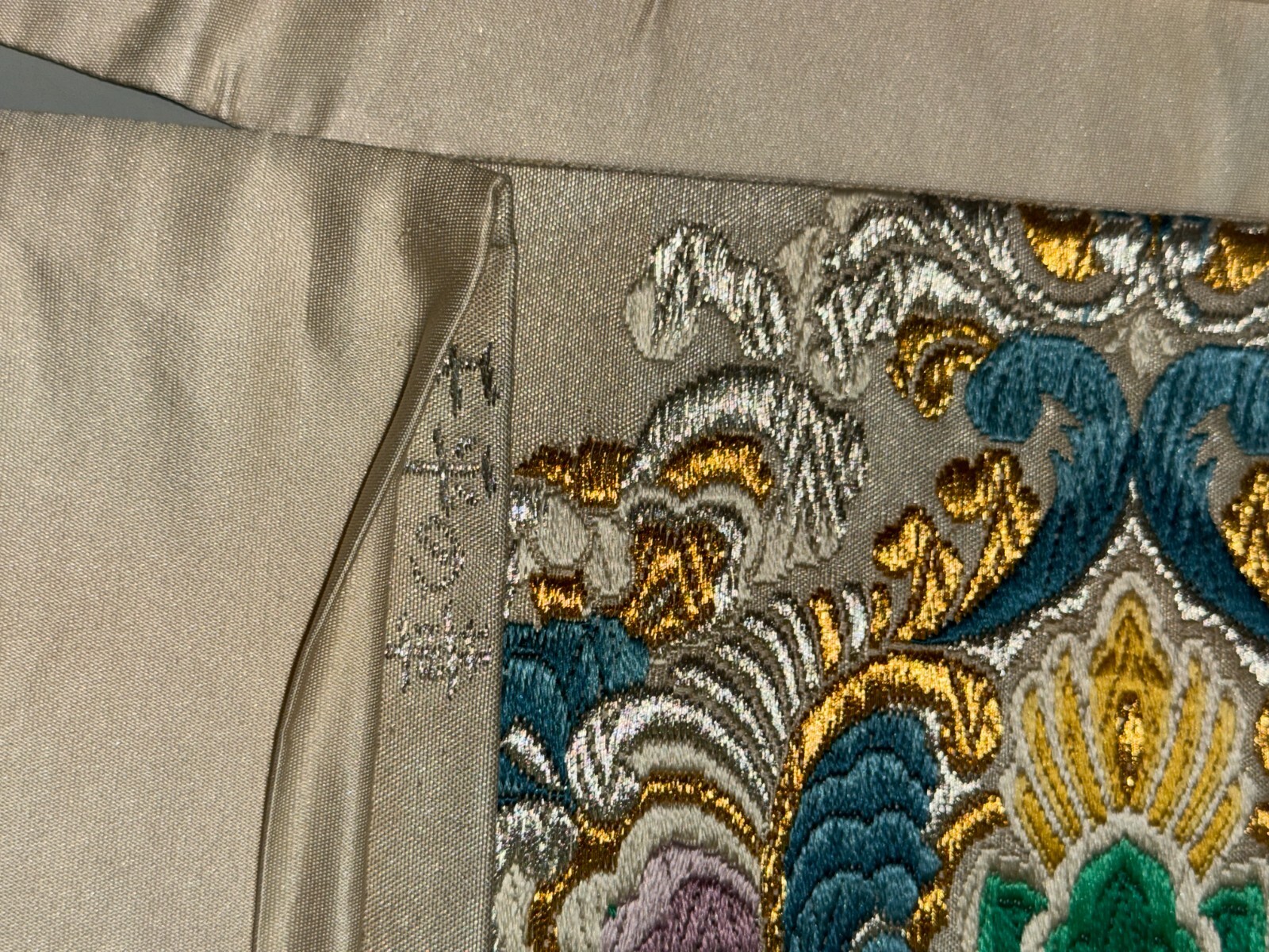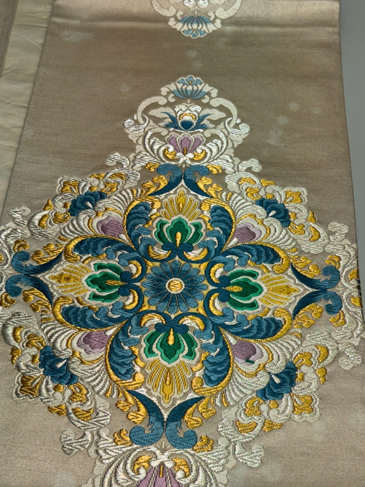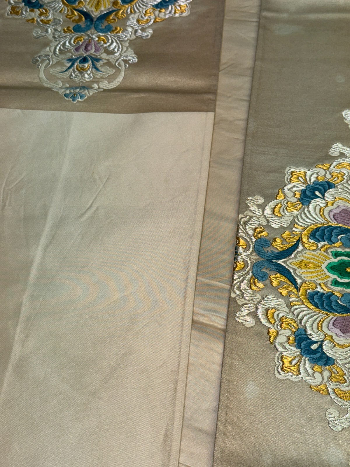 как выглядит Japanese Vintage Kimono Fukuro Obi silk White Embroidery Expensive Dirt 170x12in фото