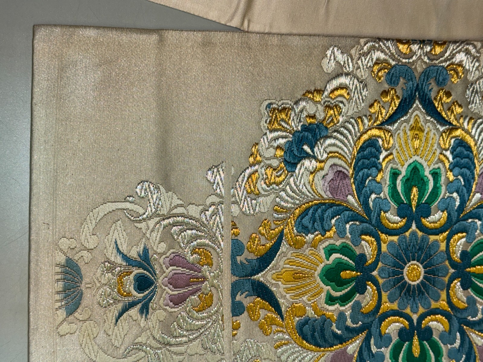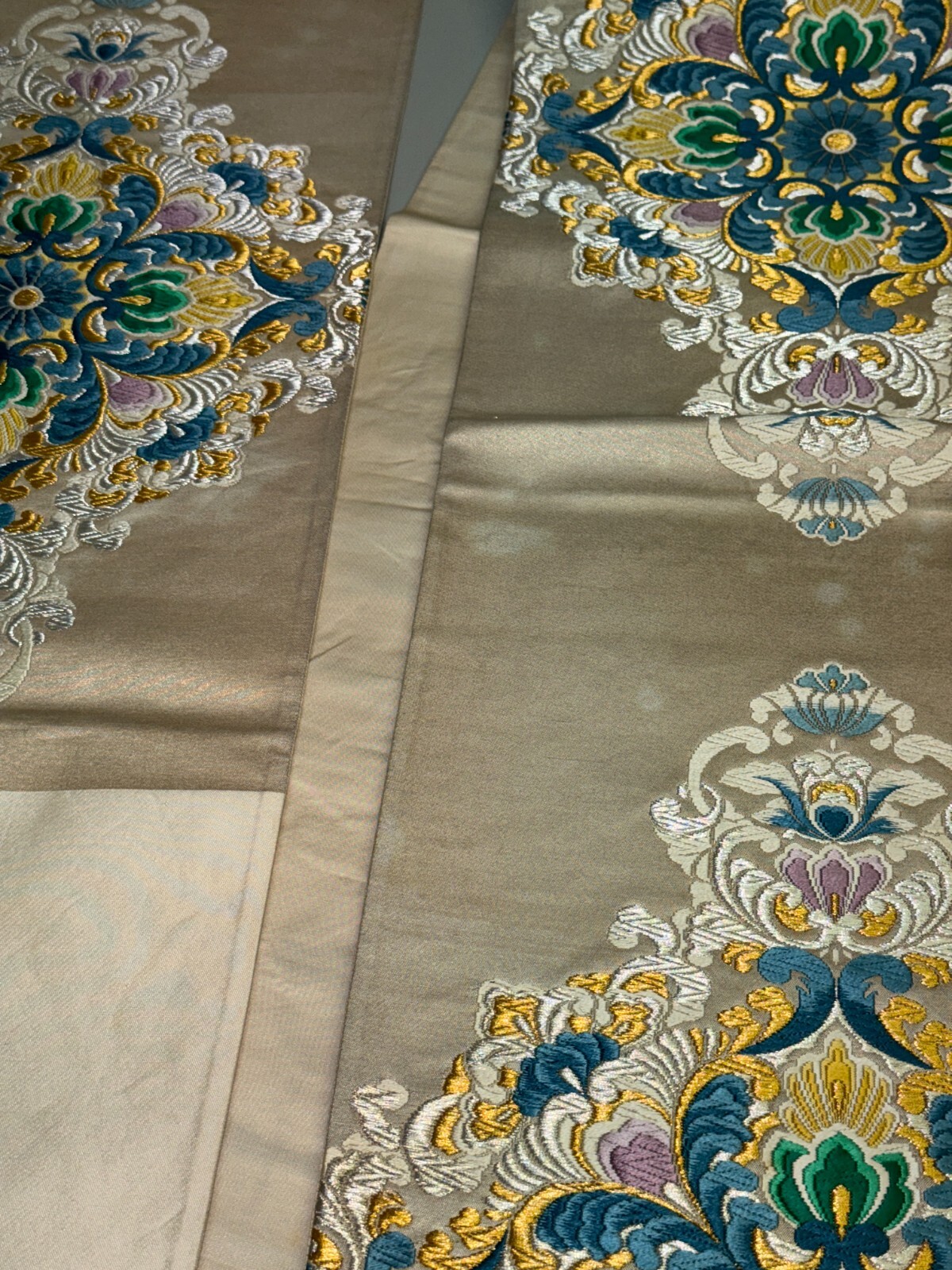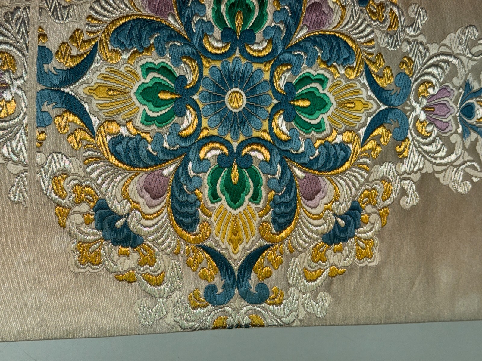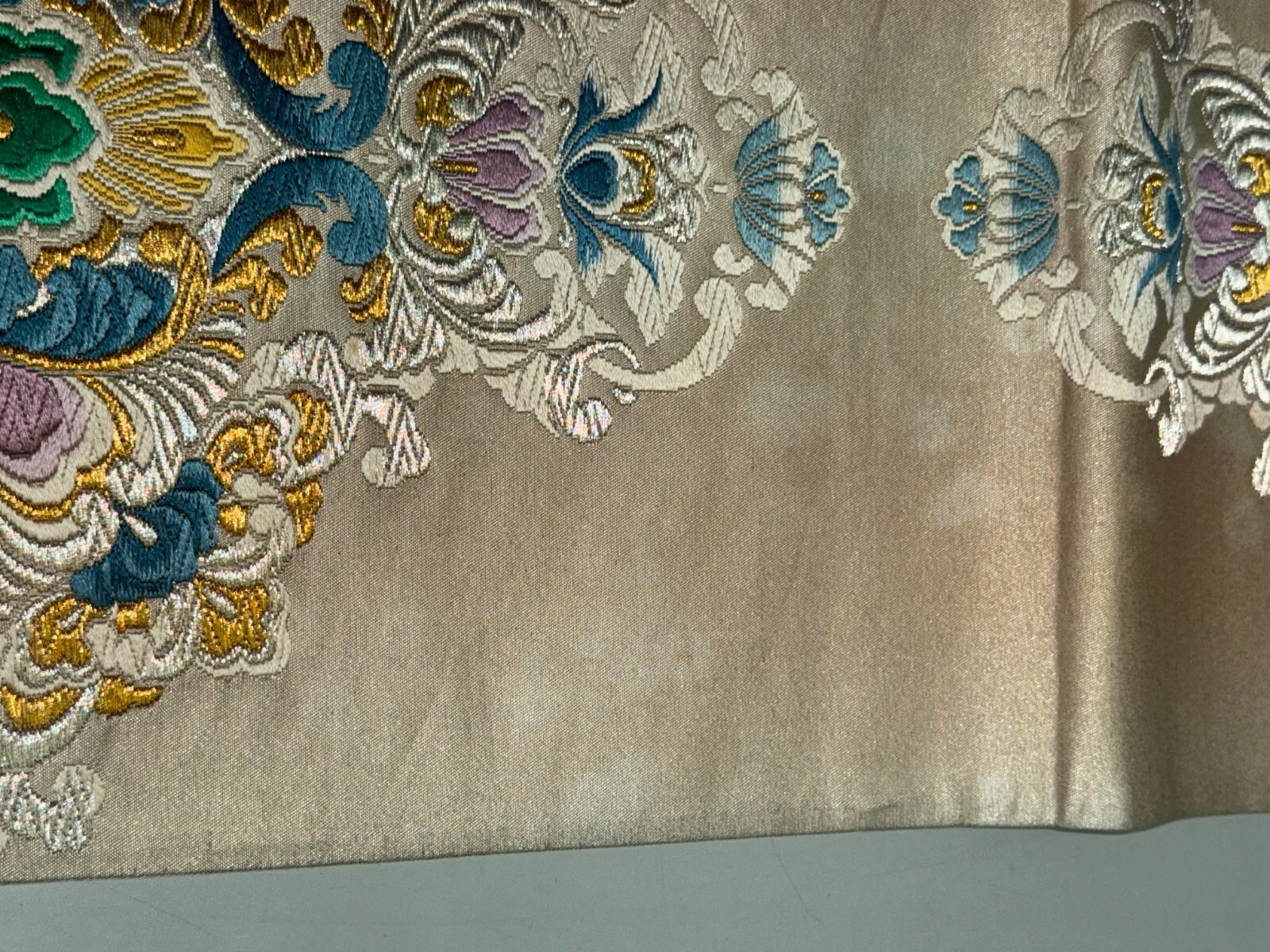 как выглядит Japanese Vintage Kimono Fukuro Obi silk White Embroidery Expensive Dirt 170x12in фото