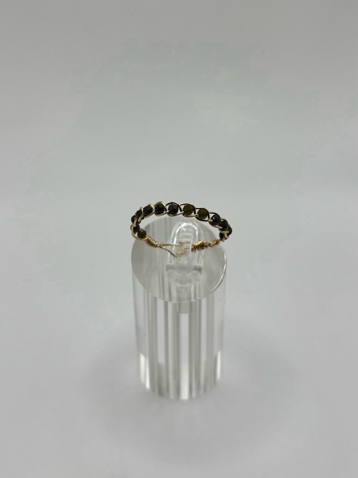 как выглядит Dainty Handmade Braided Ring With Black Obsidian Natural Gems фото