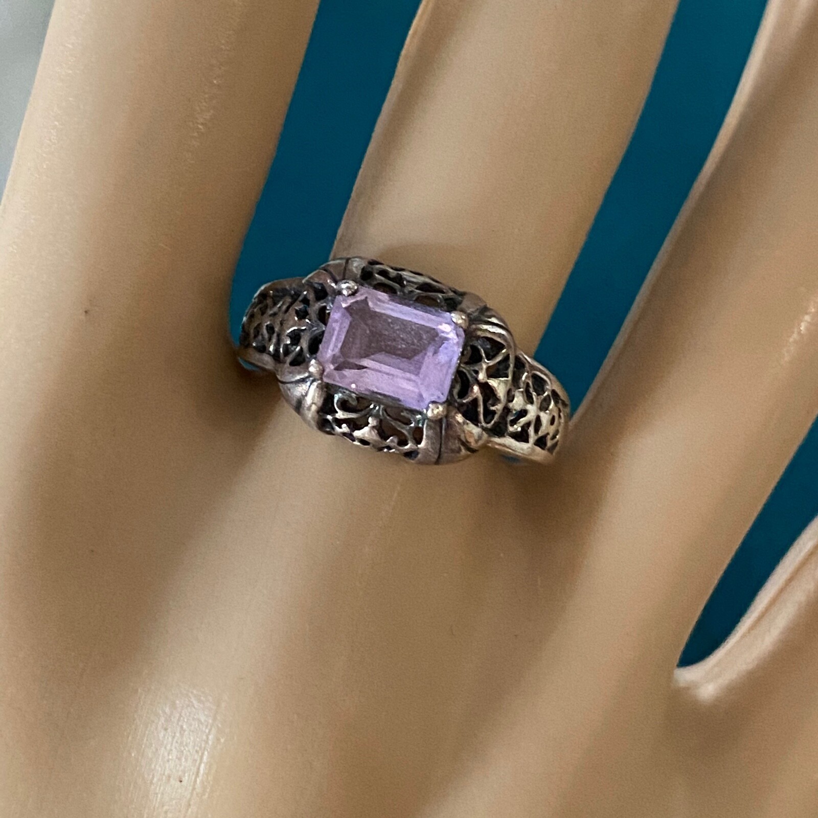 как выглядит Vintage FAS 925 Sterling Silver Genuine Amethyst Solitaire Band Ring Size 7 фото