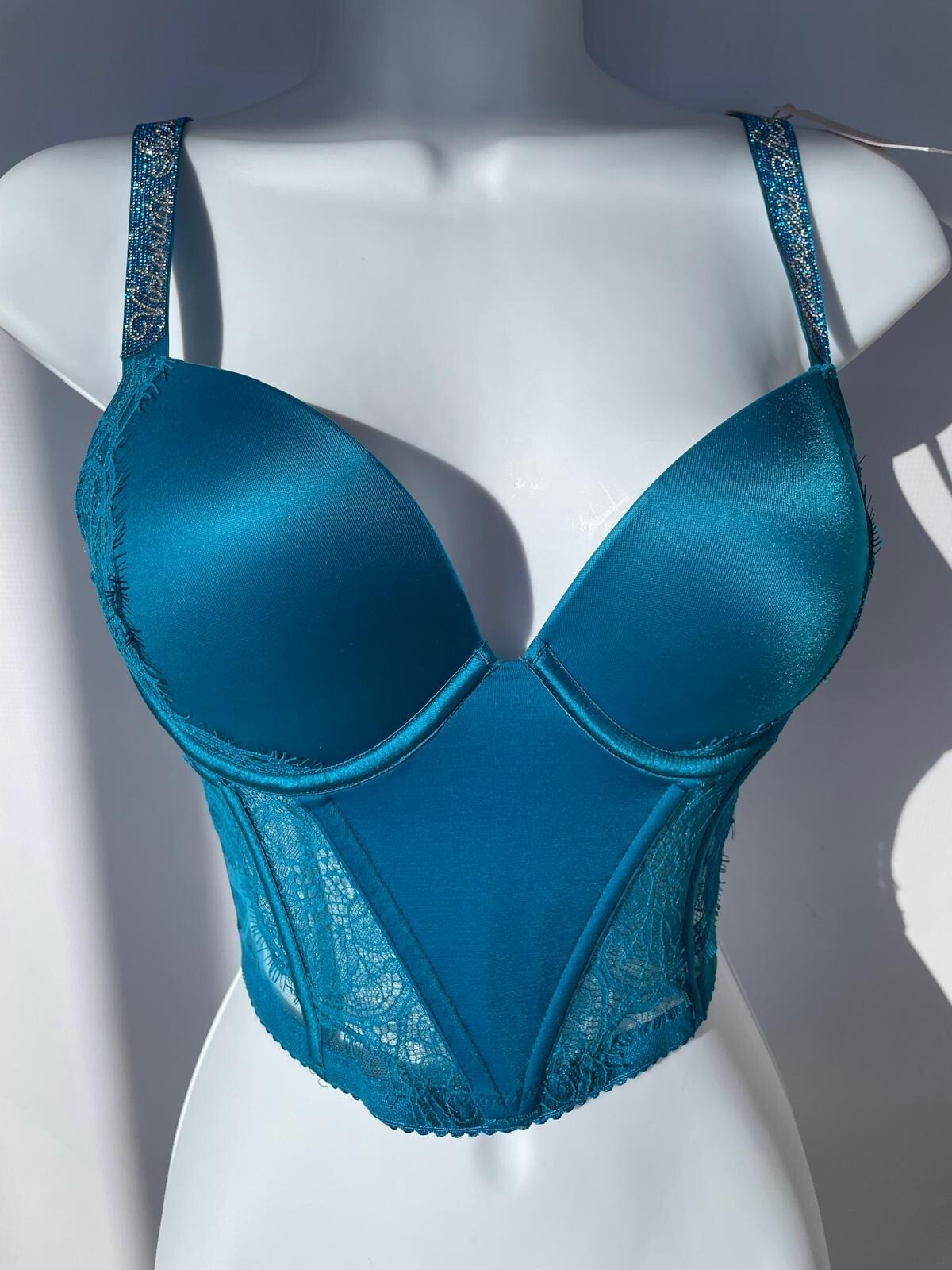 как выглядит Victorias Secret Shine Strap Push Up Blue Corset Top 32C фото