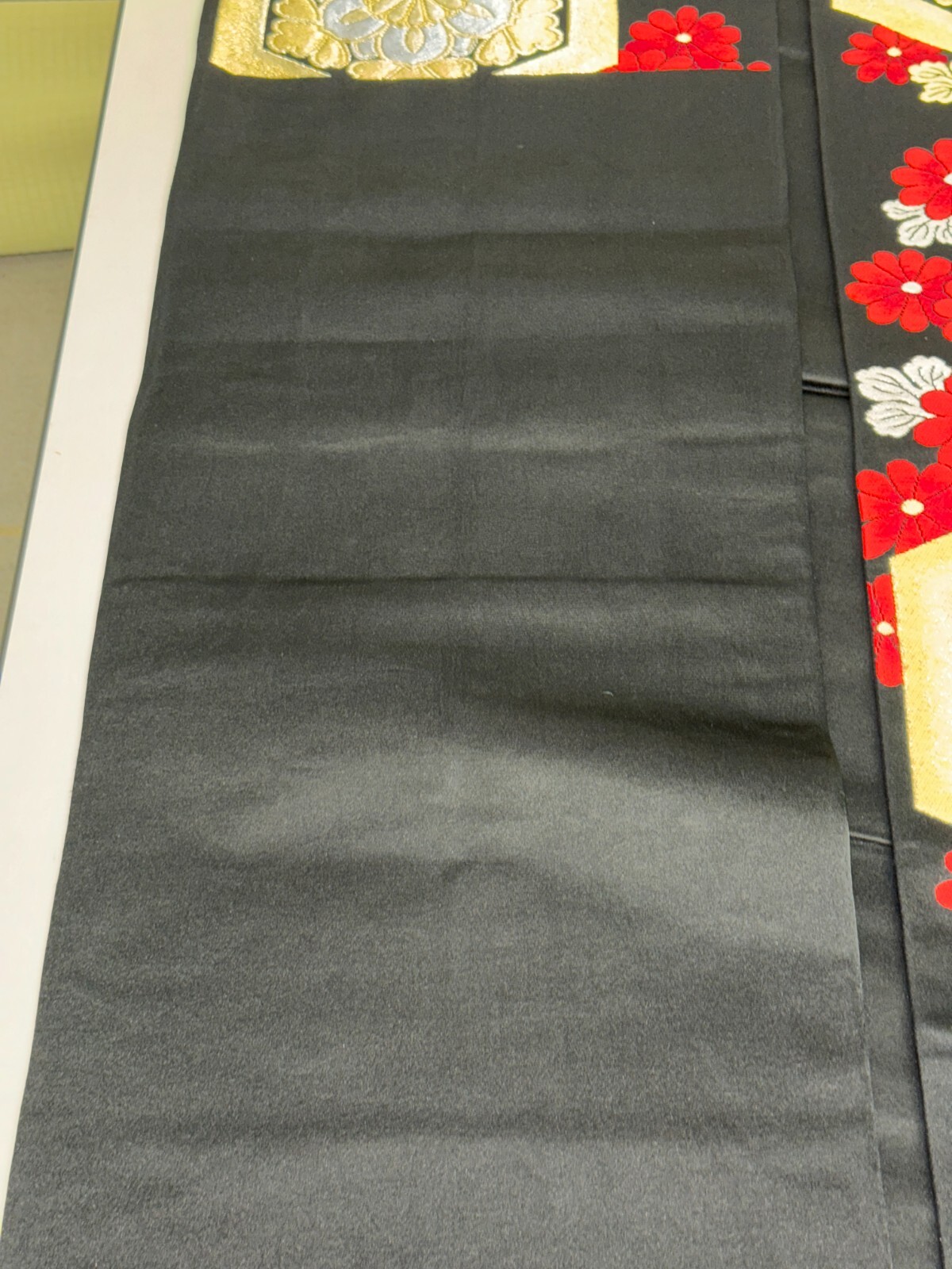 Japanese Vintage Kimono Fukuro Obi silk black Embroidery Expensive 159x12.2in