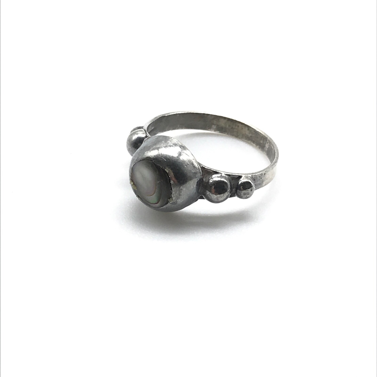 как выглядит Vintage 925 Sterling Silver Abalone Band Ring Size 6.25 фото