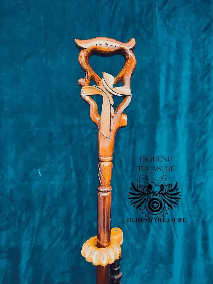Walking Stick Cane Christian Cross wood Hand carved handle wooden Art