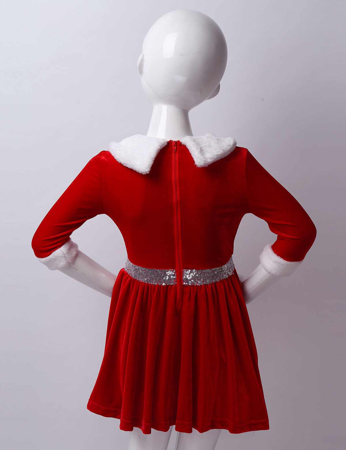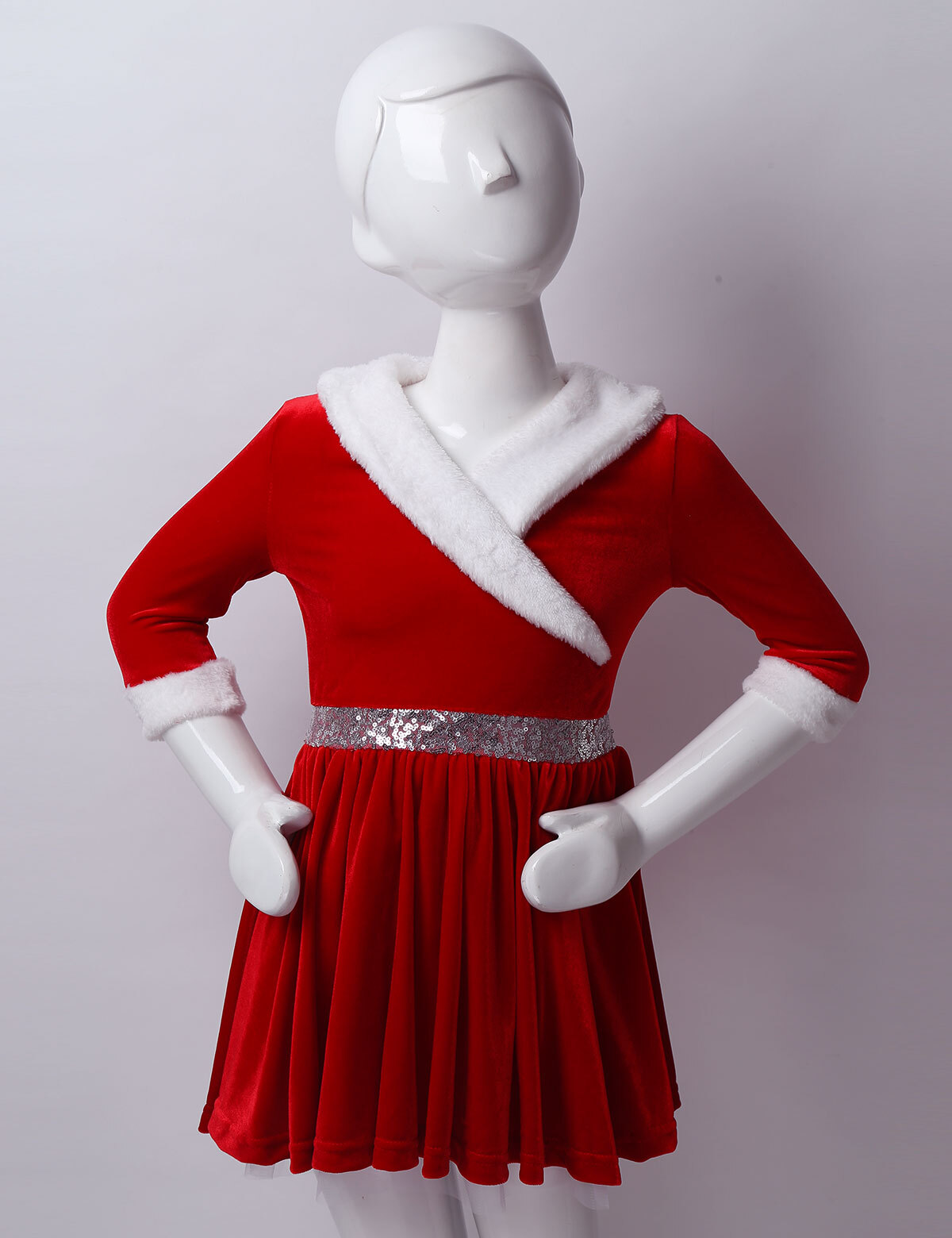 как выглядит Girls Kids Christmas Velvet Dress Long Sleeve Xmas Mrs Claus Party Dancewear фото