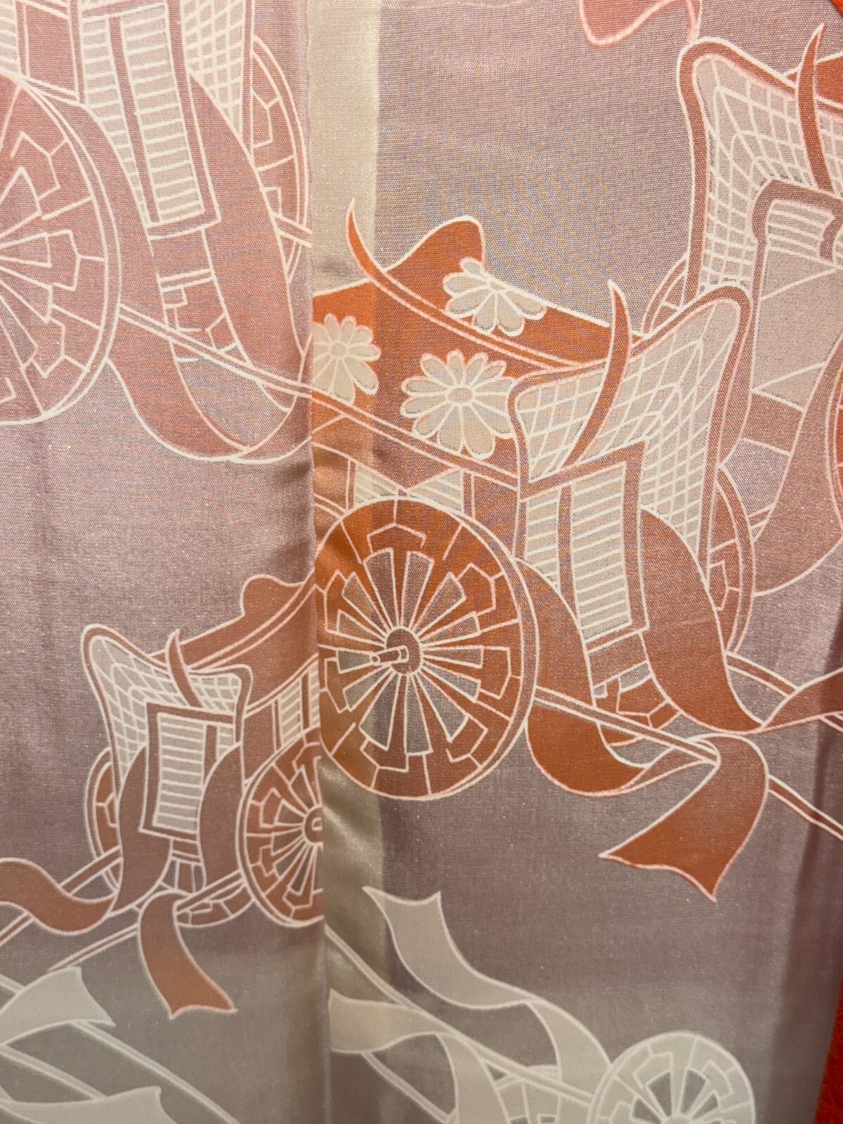 Japanese Vintage Kimono Haori Jacket Silk Red Expensive Front tie Height 32.28in