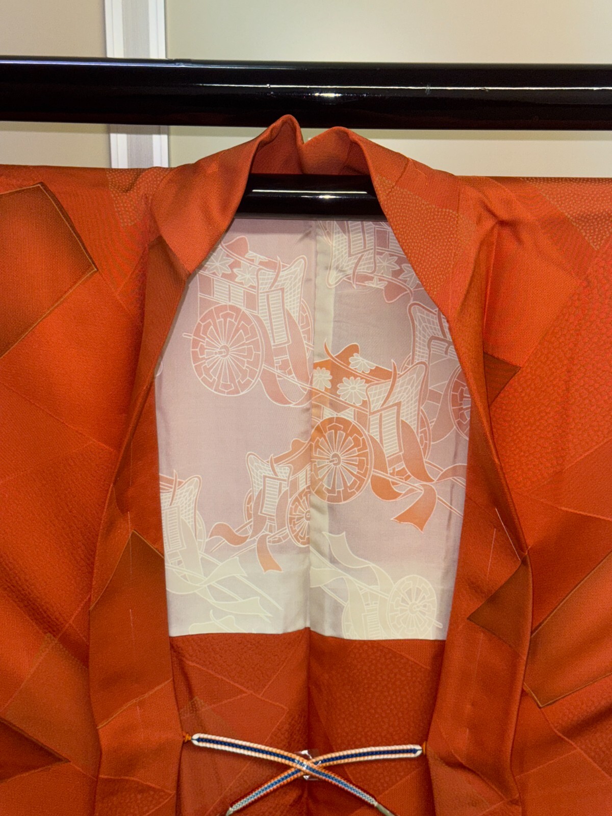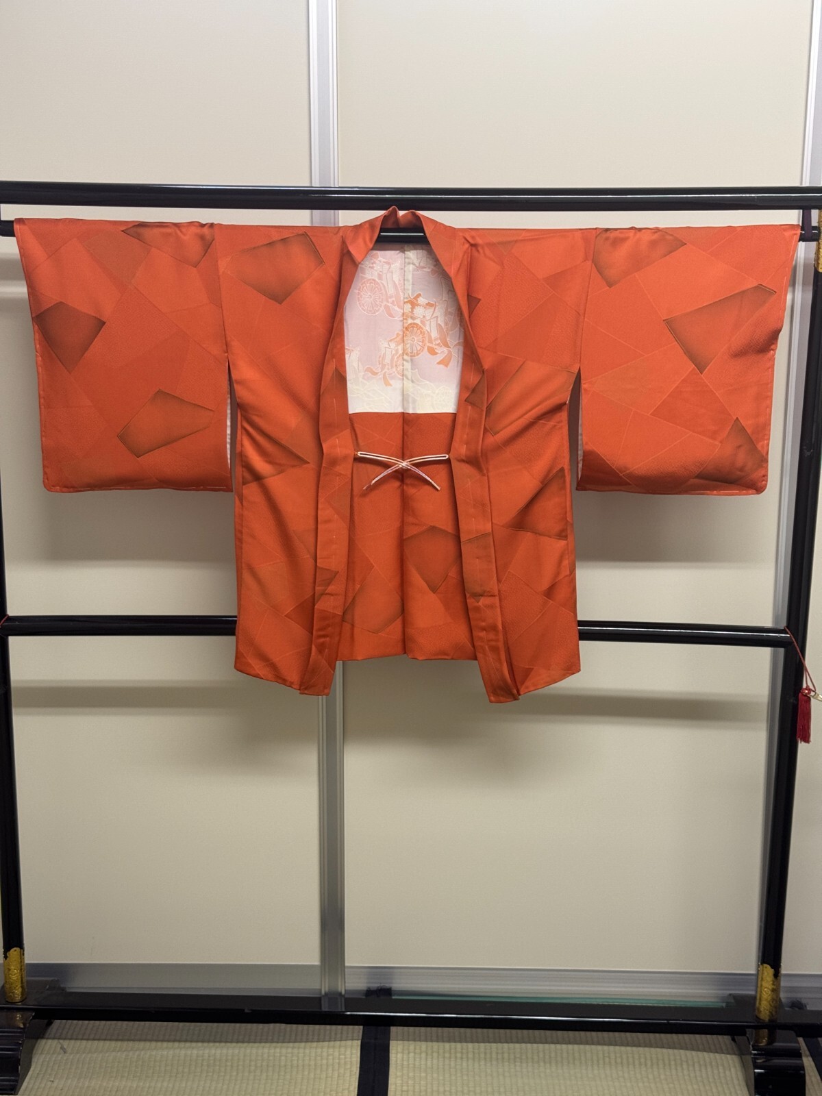 как выглядит Japanese Vintage Kimono Haori Jacket Silk Red Expensive Front tie Height 32.28in фото