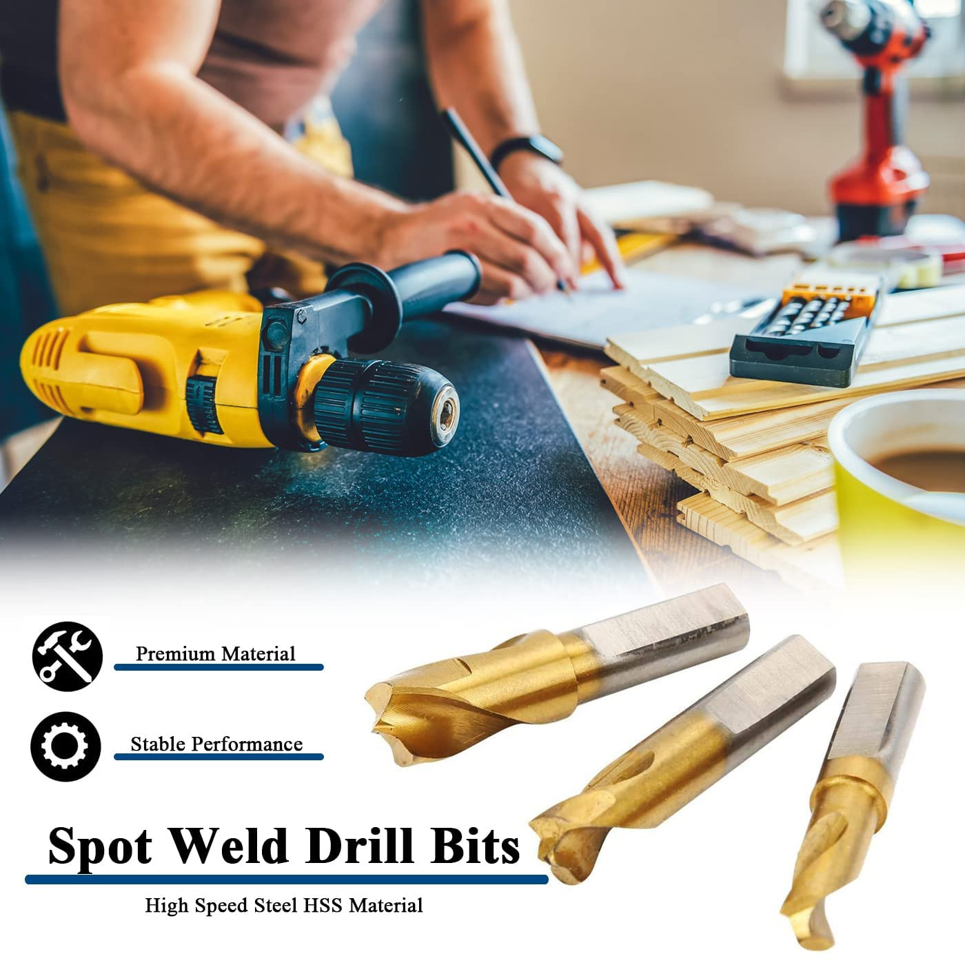 3PCS Spot Weld Drill Bits, High Speed Cobalt Steel Weld Cutter Drill Bit with Ti
