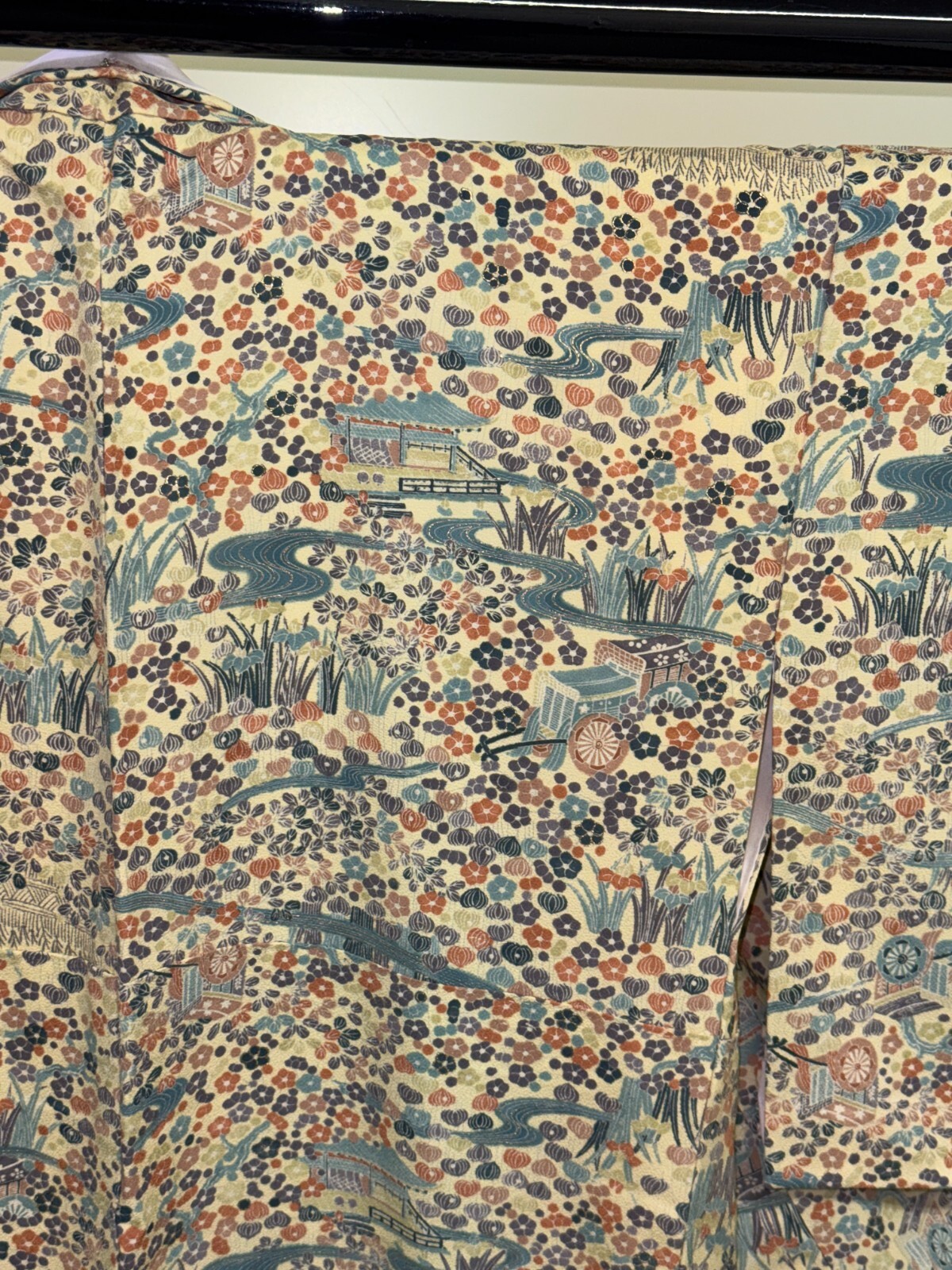 Japanese Vintage Kimono Silk Beige Expensive Tradition Flower Heigh 61.81in