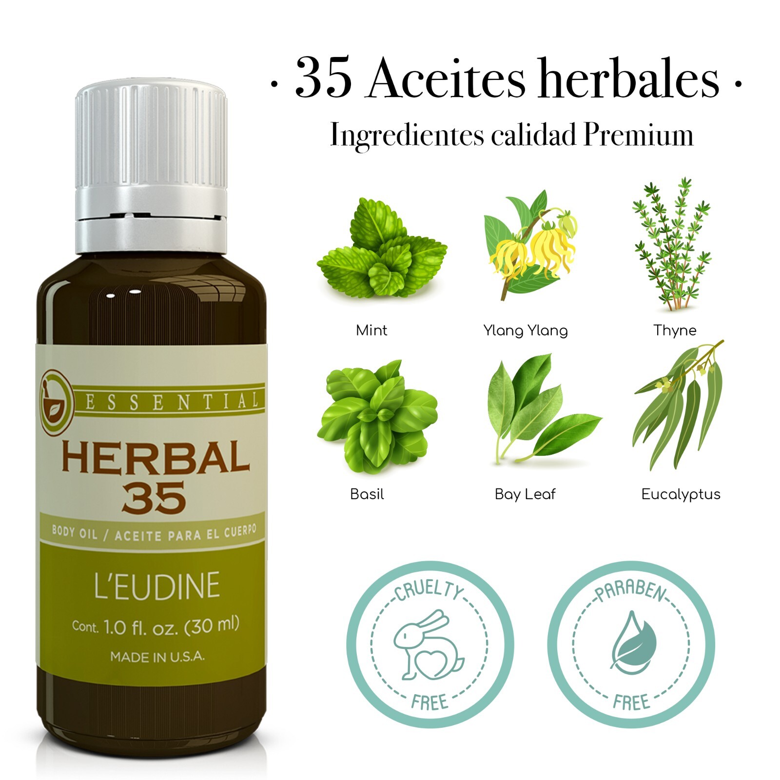 LEUDINE Herbal 35 Oil. Aceite para el alivio inmediato de la migra a y el estr s