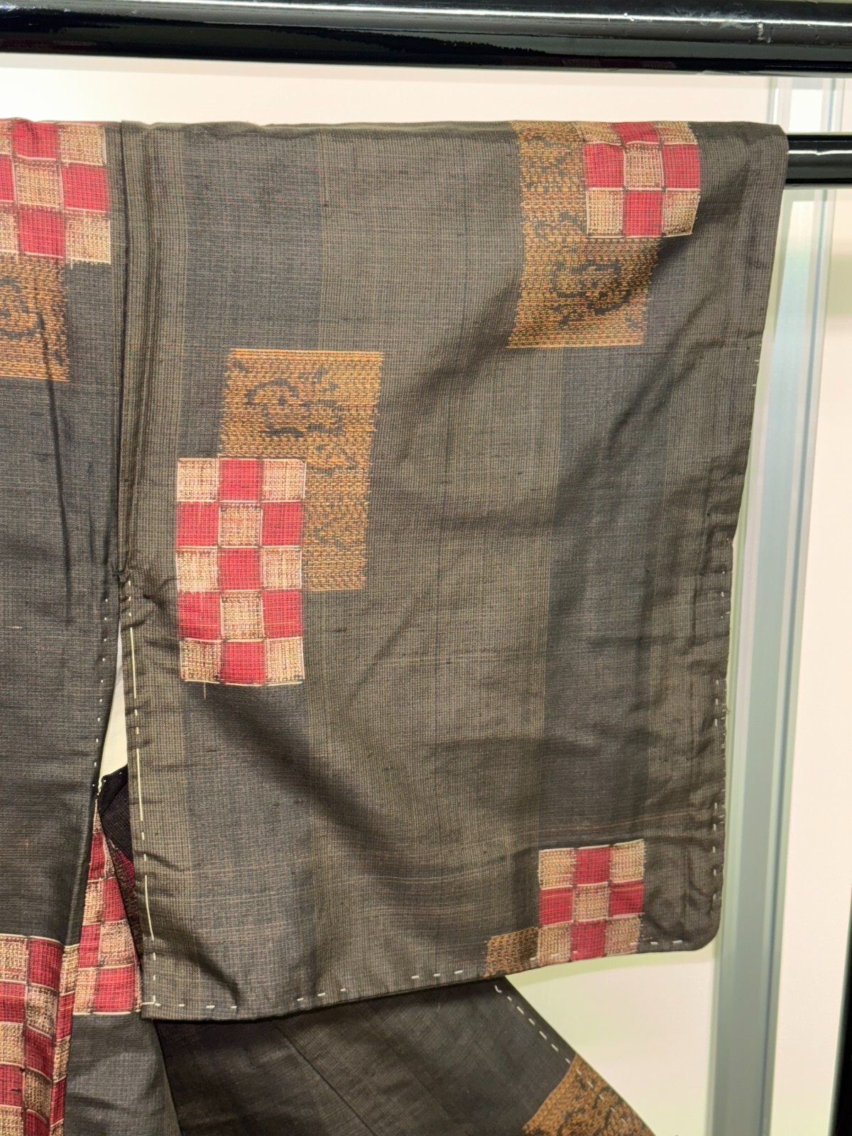 как выглядит Japanese Vintage Kimono Silk Brown Expensive Tsumugi Tradition Dirt Heigh 56.6in фото