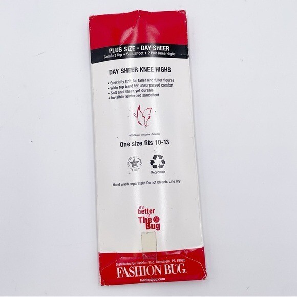 Vintage 90s Fashion Bug Plus Size Day Sheer Knee Highs Socks 100 Nylon 2 Pairs