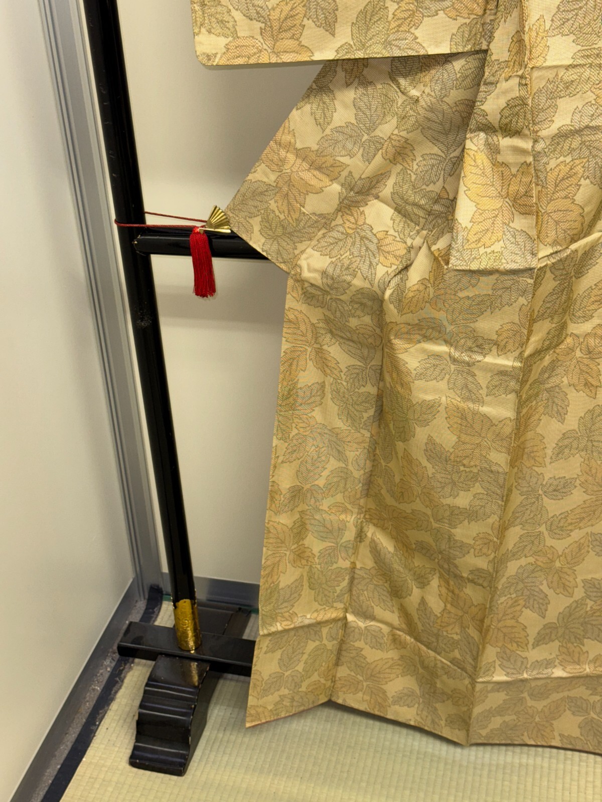 Japanese Vintage Kimono Silk Beige Expensive Tsumugi LeaveTradition Heigh 62.5in