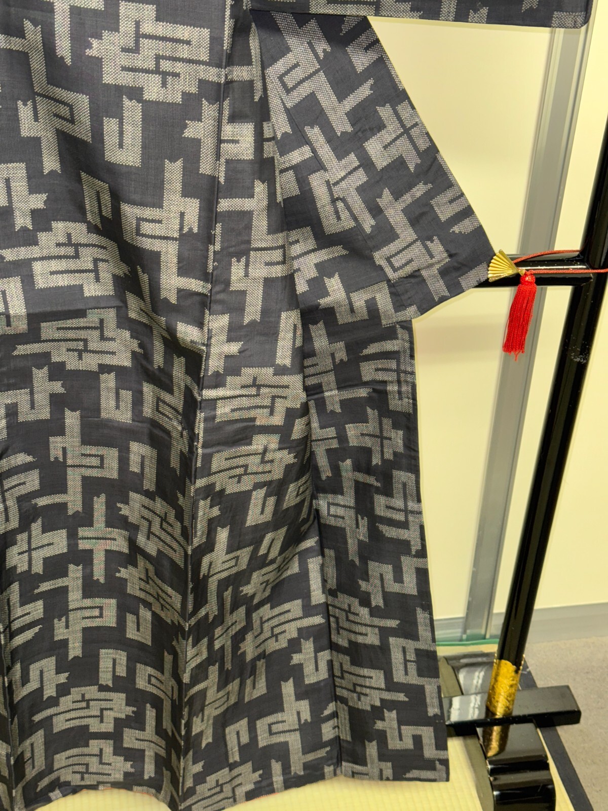 Japanese Vintage Kimono Silk Navy Tsumugi Expensive Tradition Heigh 60.23in