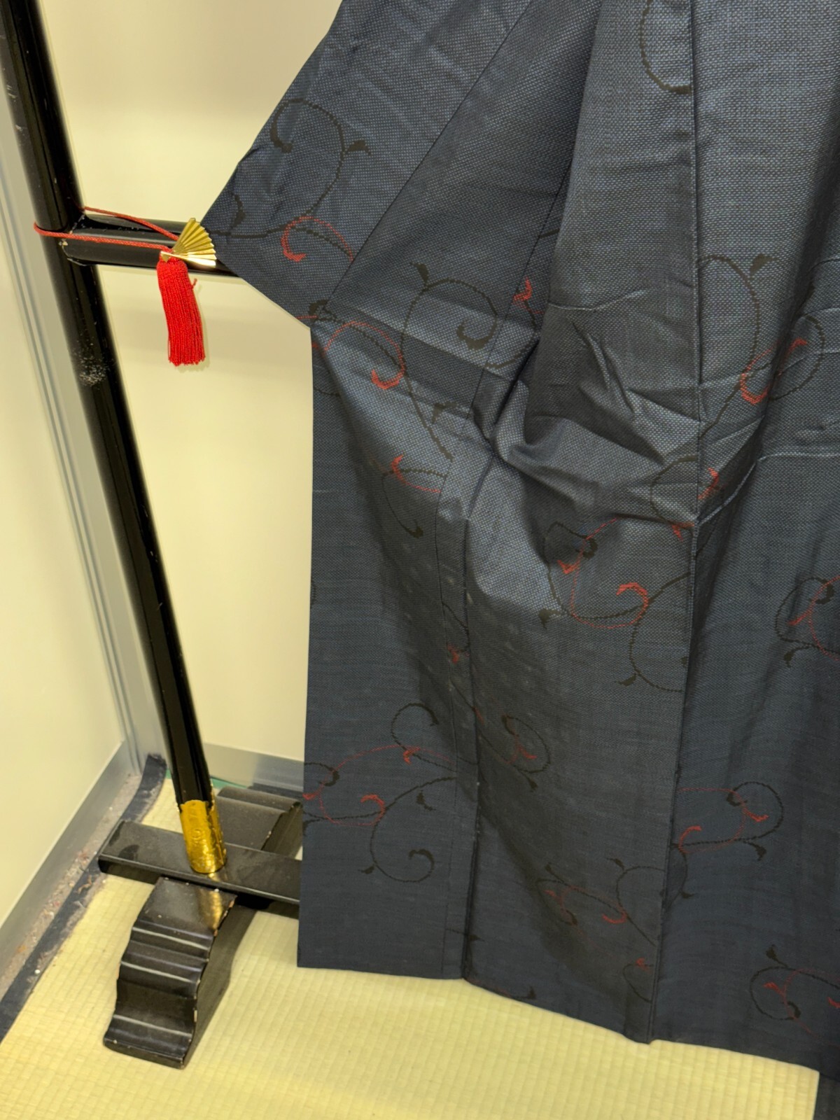как выглядит Japanese Vintage Kimono Silk Navy Oshima Tsumugi Expensive Tradition Heigh 62in фото