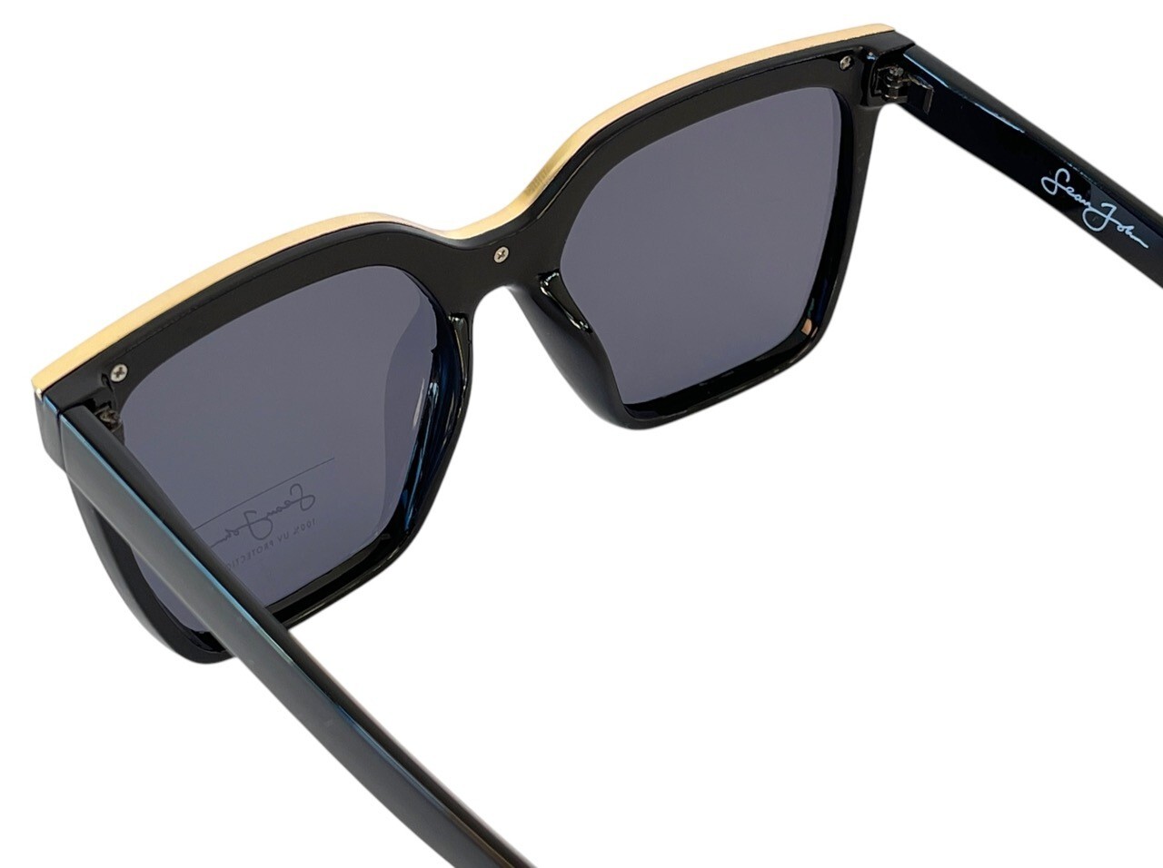как выглядит Womens Sean John Solid Black Gold Sunglasses Big Dark Tint Lenses Fashion New фото