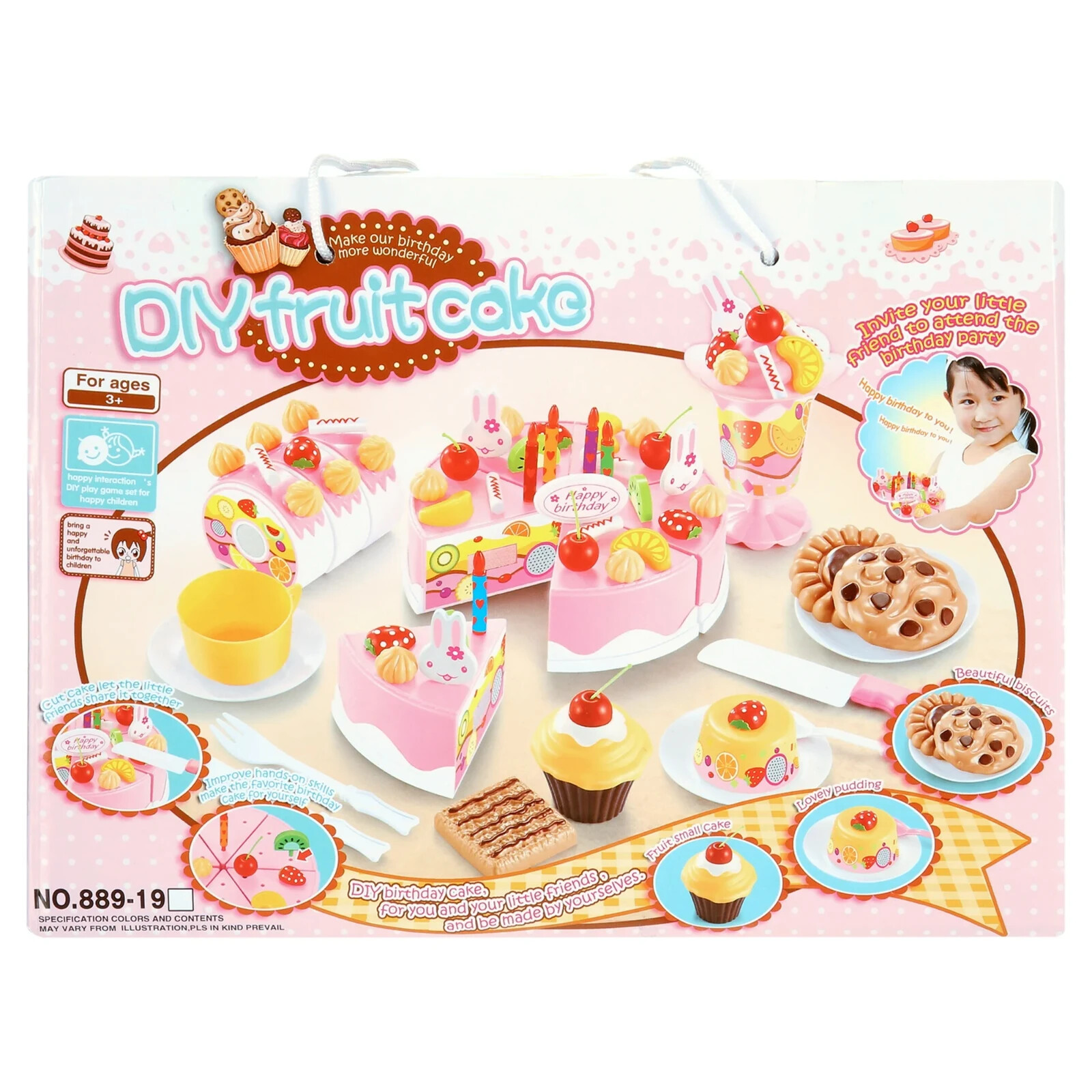 как выглядит Birthday Cake Toy Play Food Set 75 Pieces Plastic Kitchen Cutting Toy фото