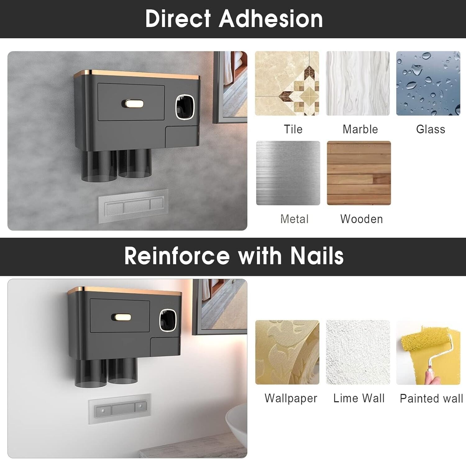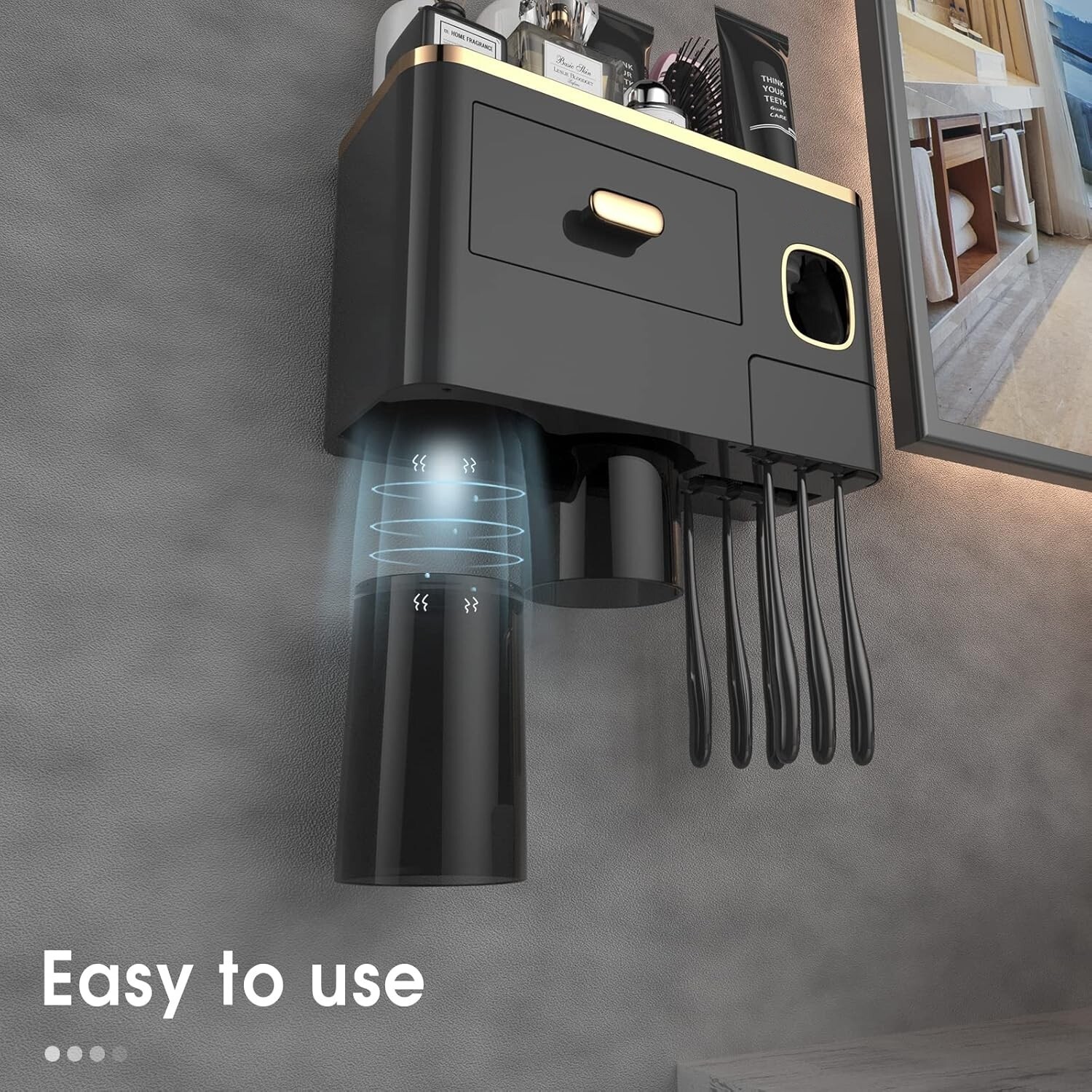 Set Includes: Toothbrush holder, Toothpaste dispenser, Magnetic mouthwash cups, Large capacity tray