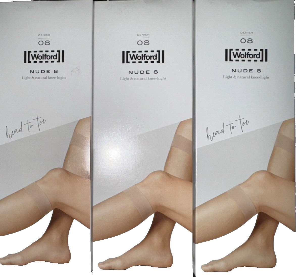 Lot of Three Pairs of Wolford Nude 8 Knee-Highs Color: Black Size: Medium 30203
