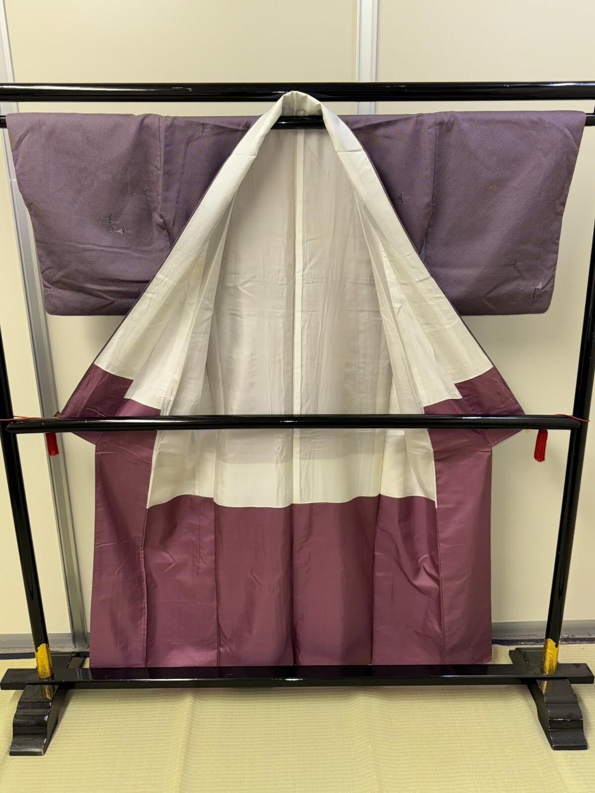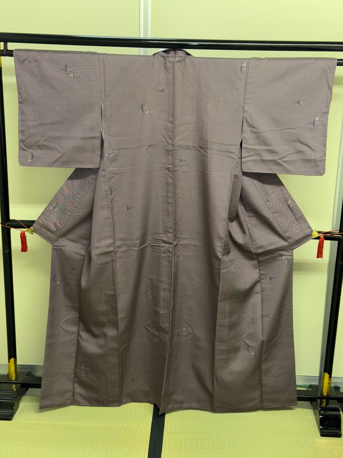 как выглядит Japanese Vintage Kimono Silk Purple Expensive Tradition Small Dot Heigh 63.38in фото