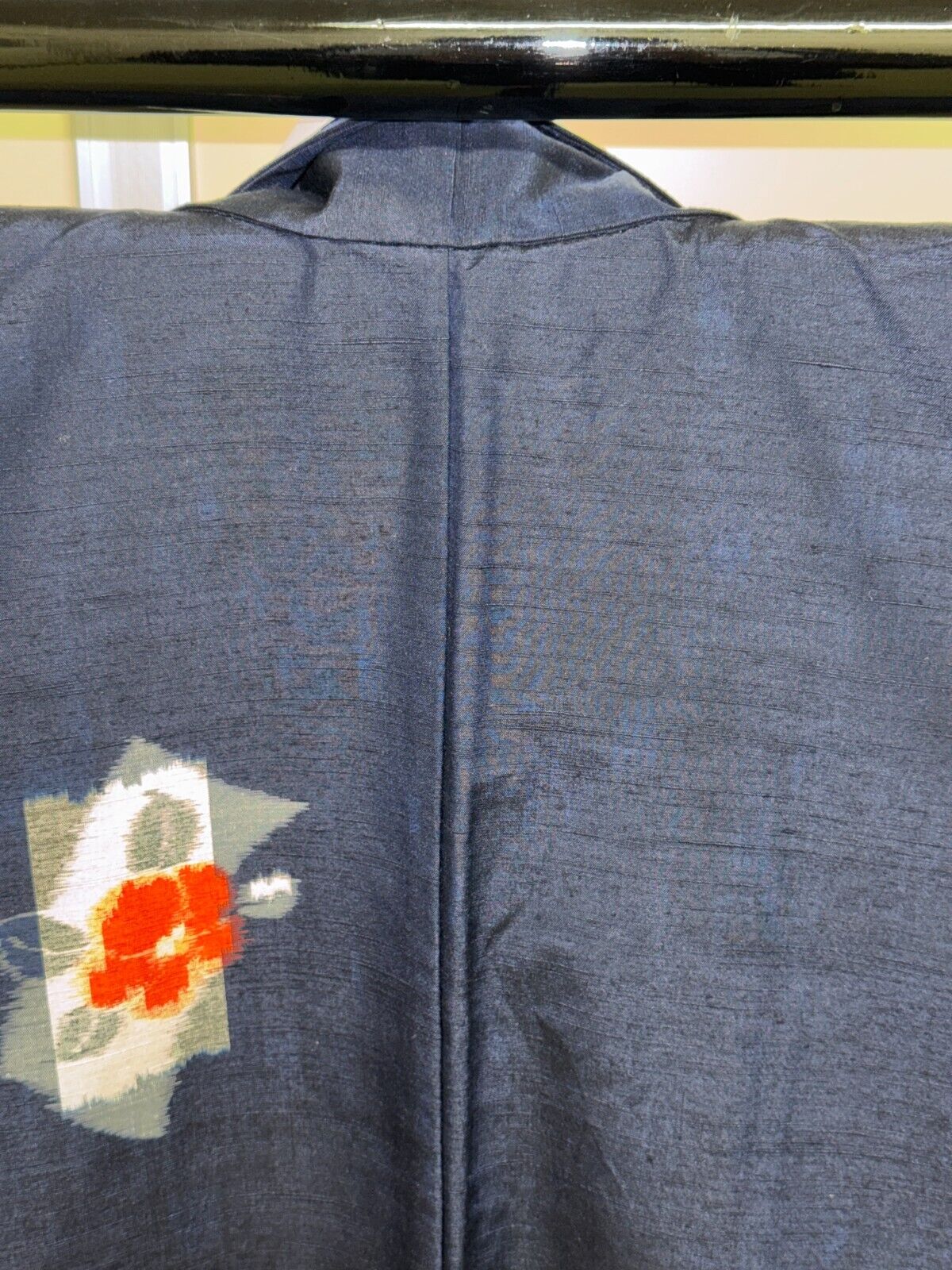 как выглядит Japanese Vintage Kimono Silk Navy Tsumugi Expensive Tradition Flower Heigh 62in фото