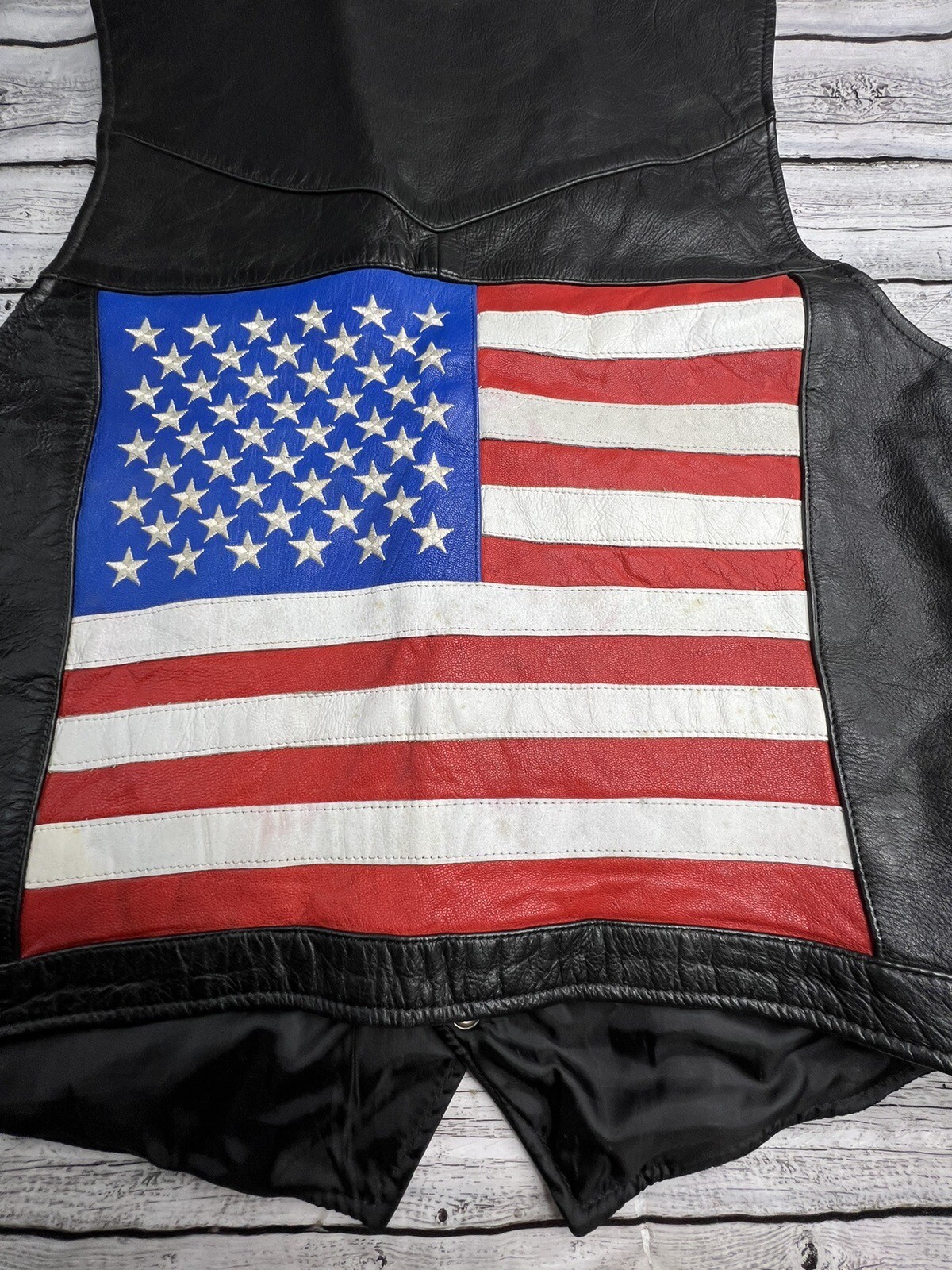 как выглядит Large Men s Bikers Club Motorcycle Vest With Large American Flag On The Back фото