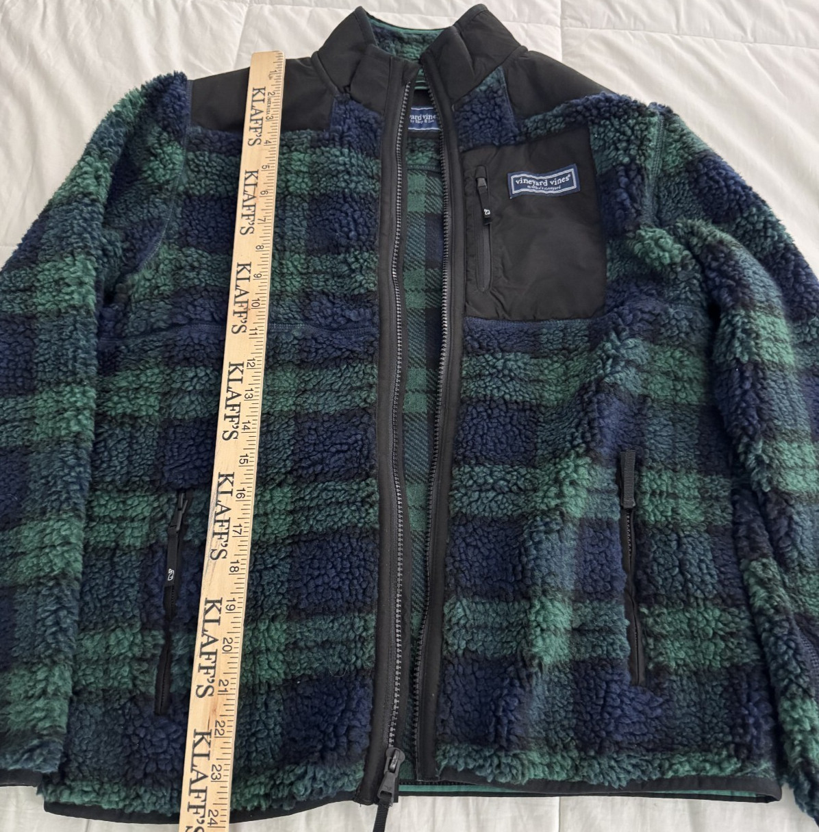 как выглядит Vineyard Vines - Marthas Vineyard Youth Jacket Blue Green Sherpa - SIZE LARGE фото