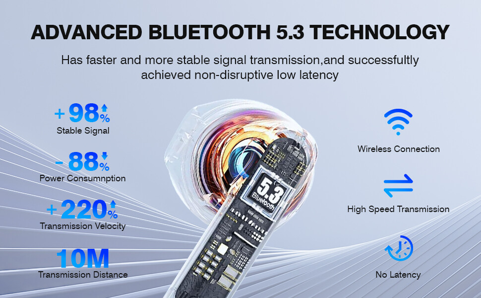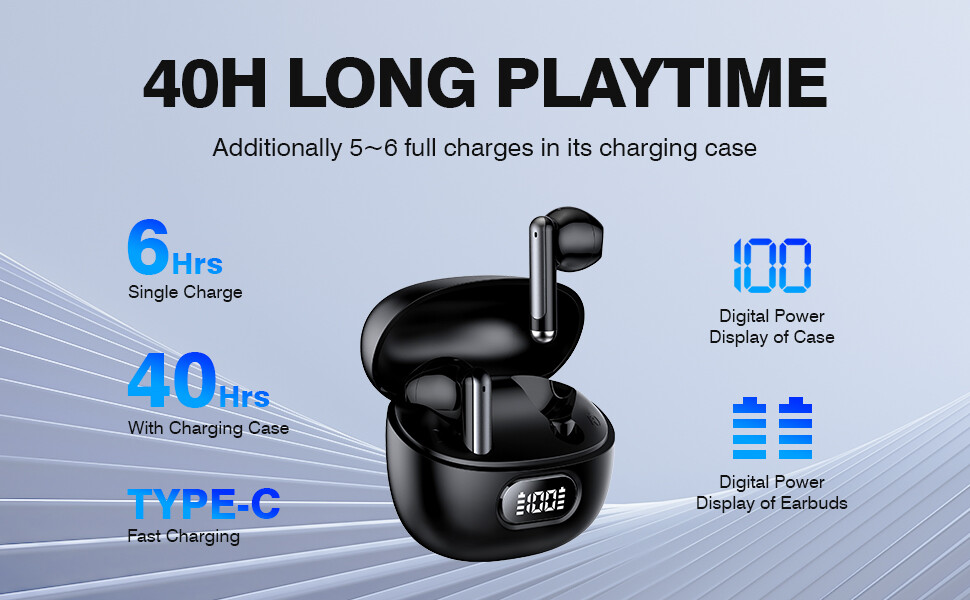 Bluetooth 5.3 Earbuds - 40H Deep Bass Sound, ENC Mic, LED Display, Touch Control
