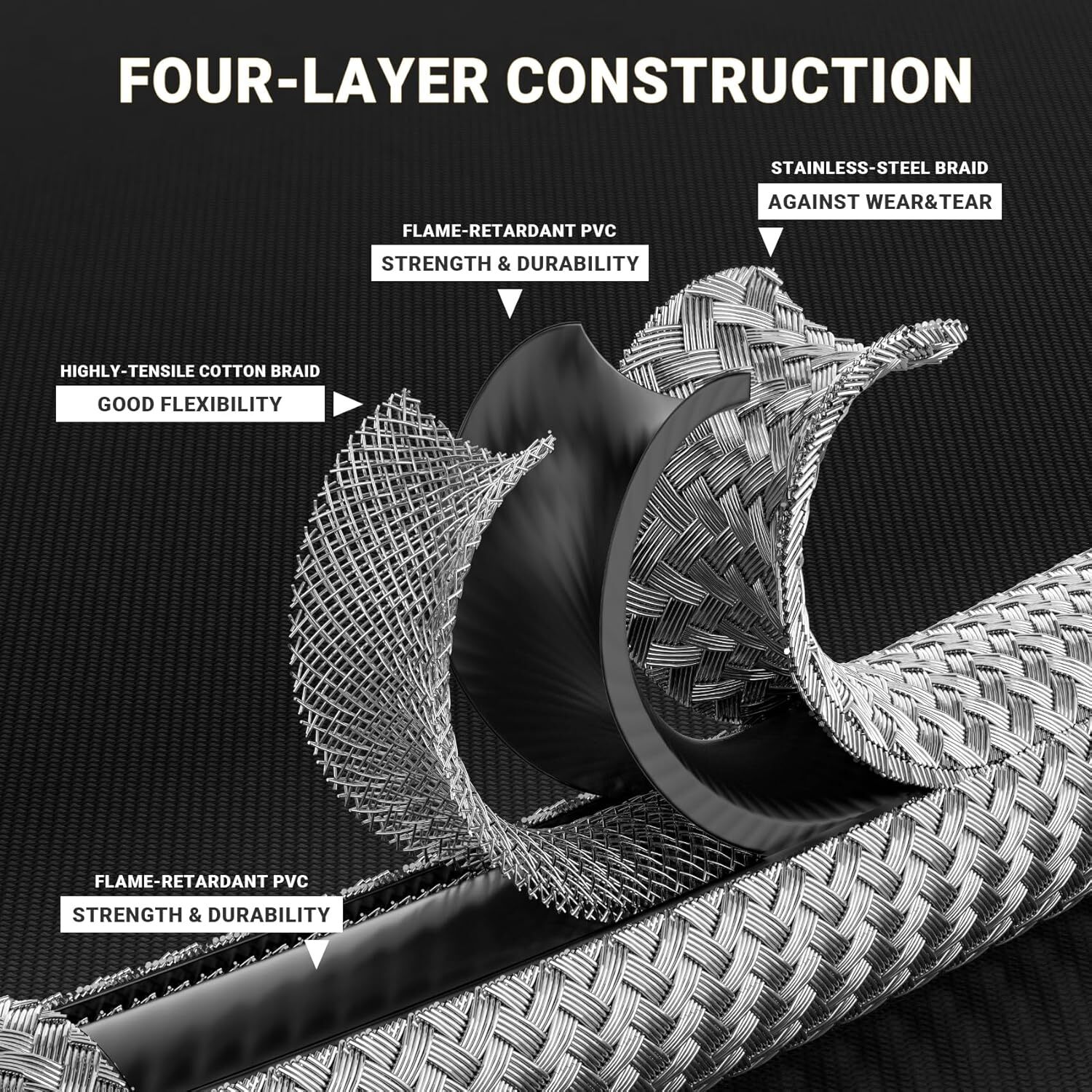 Stainless Braided Propane 5FT Hose Gas Grill Regulator Hose w/ Gauge, 3/8 Flare