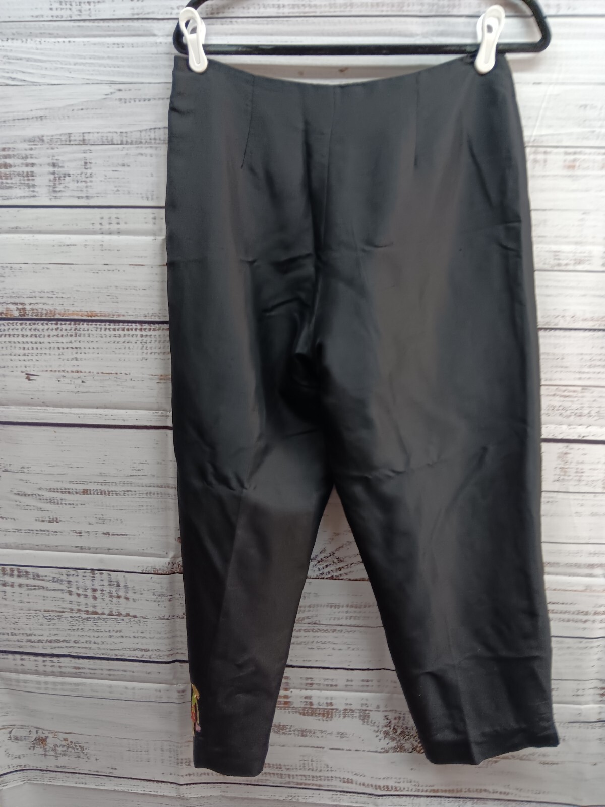 как выглядит SLB Ankle Pants Womens 10 Embroidered 100 Silk Novelty Black Vintage фото