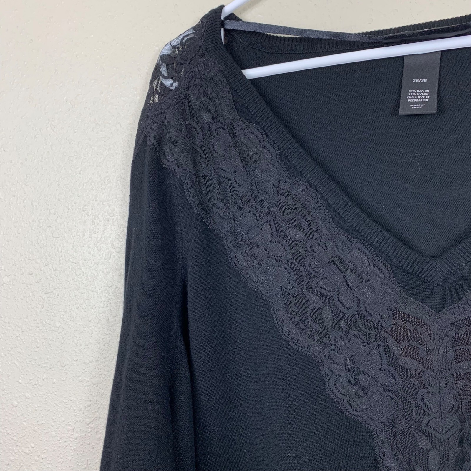 как выглядит Lane Bryant Women s Whimisgoth 3/4 Sleeve Lace Neck Sweater Black - Size 26/28 фото