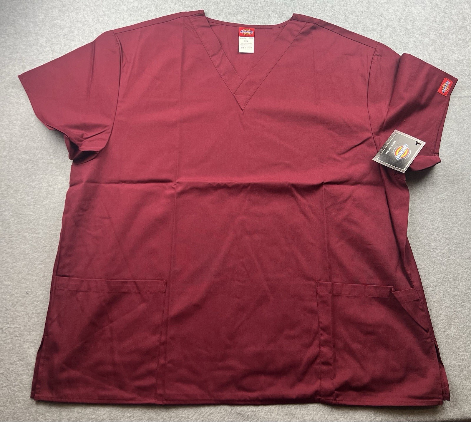 Dickies Scrubs Women s Classic V-Neck Top Wine Size 2XL NWT