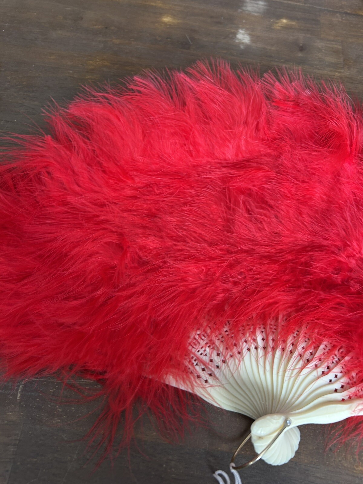как выглядит Feather Hand Fan Red Vintage Folding Fan Feather Fan Handheld for Party фото