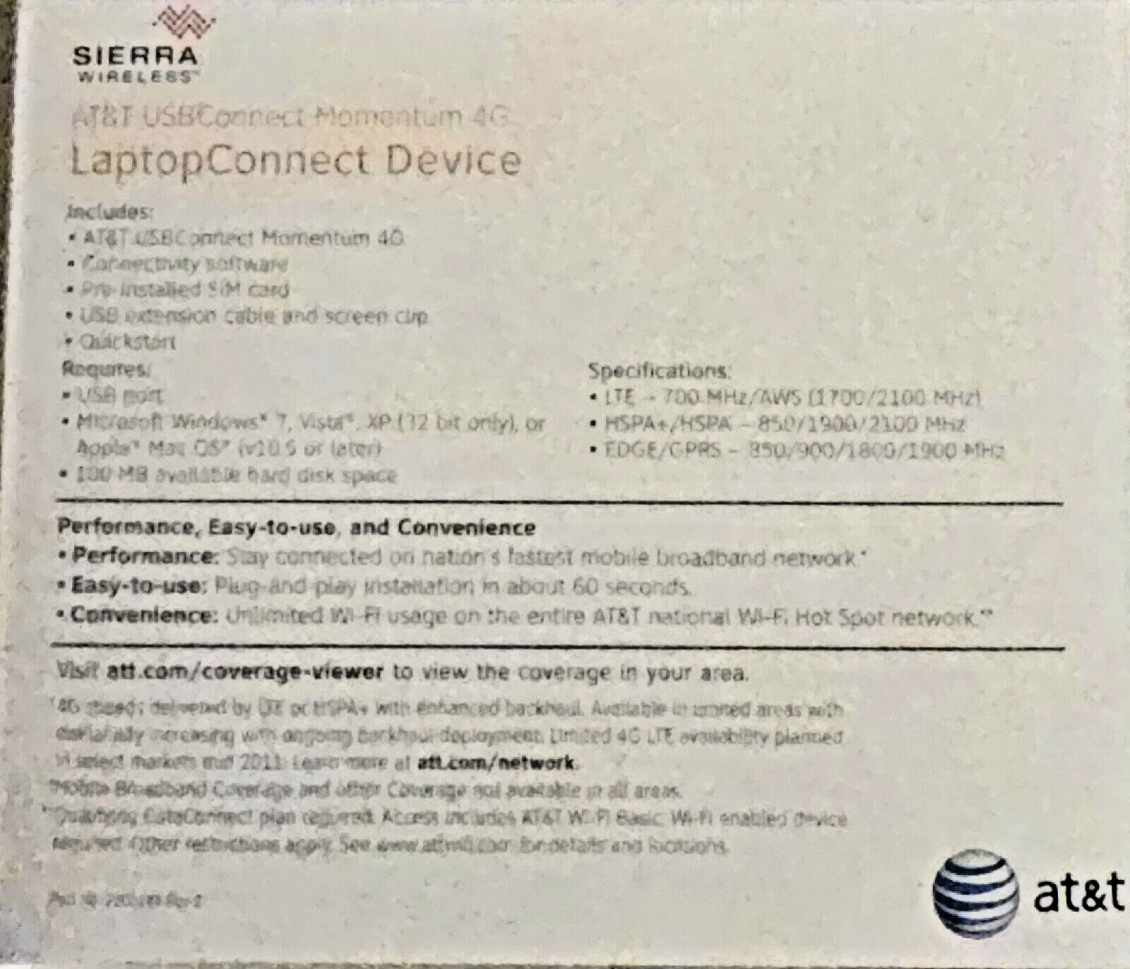 Sierra Wireless AT T USB Connect Momentum 4 GB Laptop Connect New in Open Box