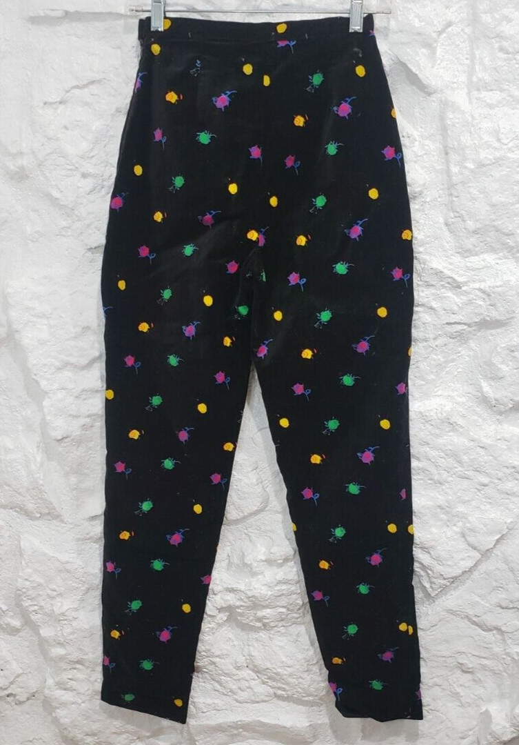как выглядит Vintage 90s Lilly Pulitzer Pants Black Velvet Bright Rose Flower Print Sz 2 фото