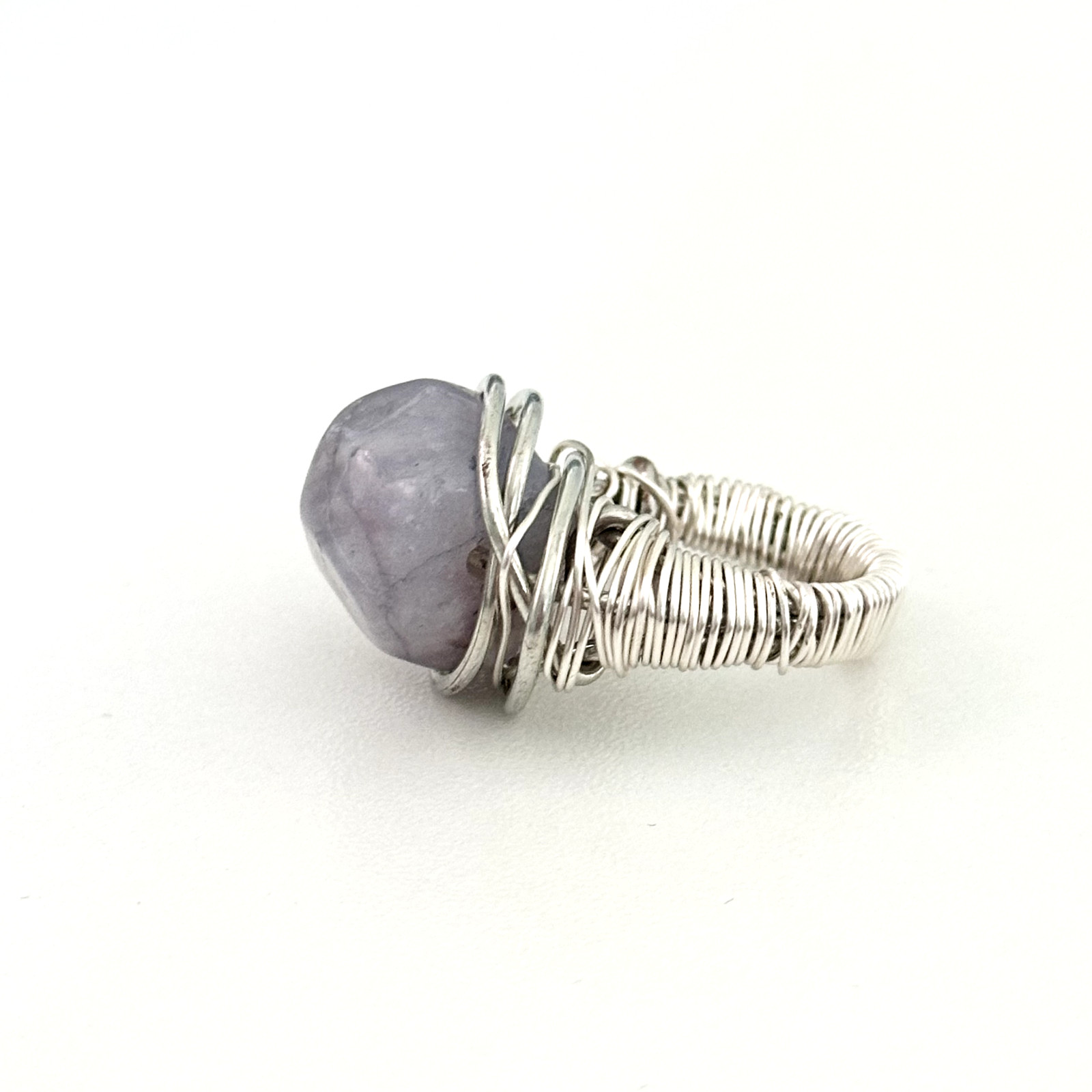 как выглядит Ladies Genuine Amethyst Artisan Wire Wrapped Chunky Silver Tone Ring Size 5 фото