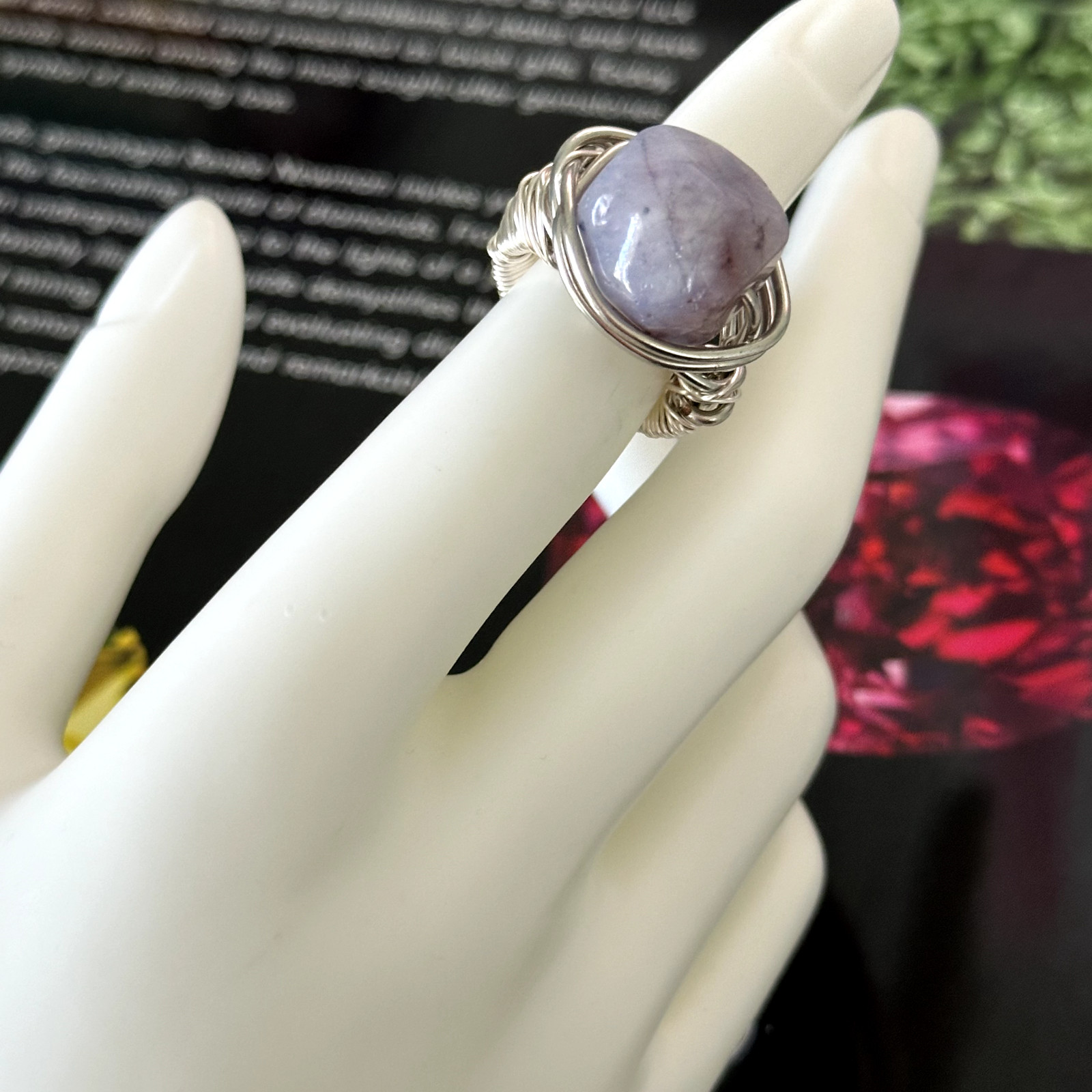 Ladies Genuine Amethyst Artisan Wire Wrapped Chunky Silver Tone Ring Size 5