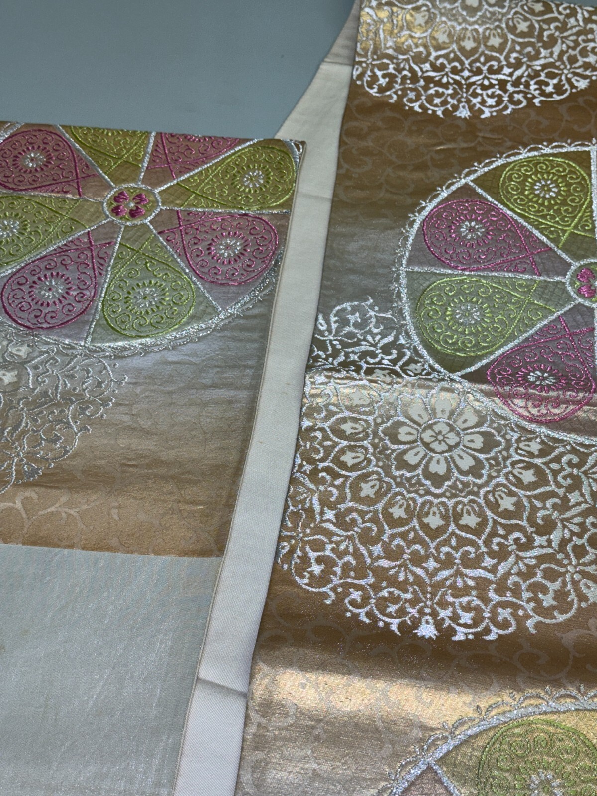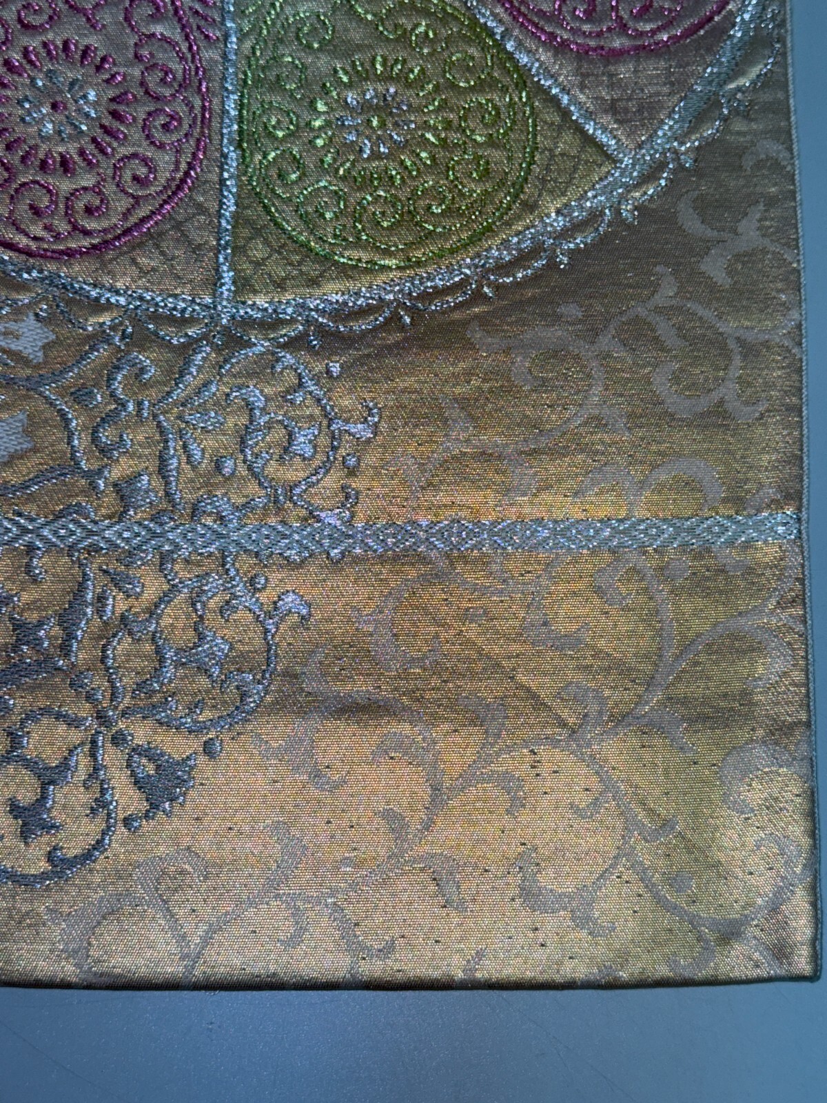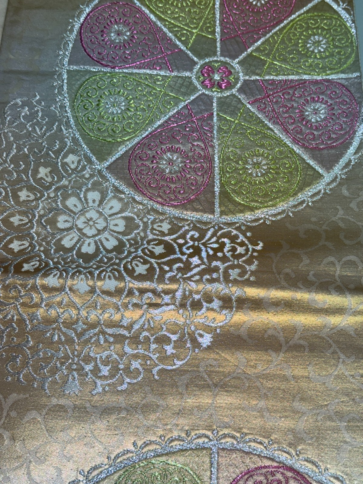как выглядит Japanese Vintage Kimono Fukuro Obi silk Gold Embroidery Expensive 165.3x12.2in фото