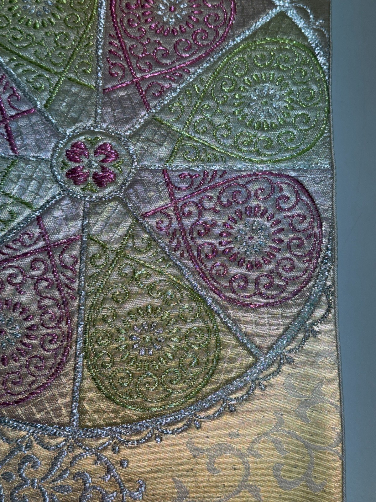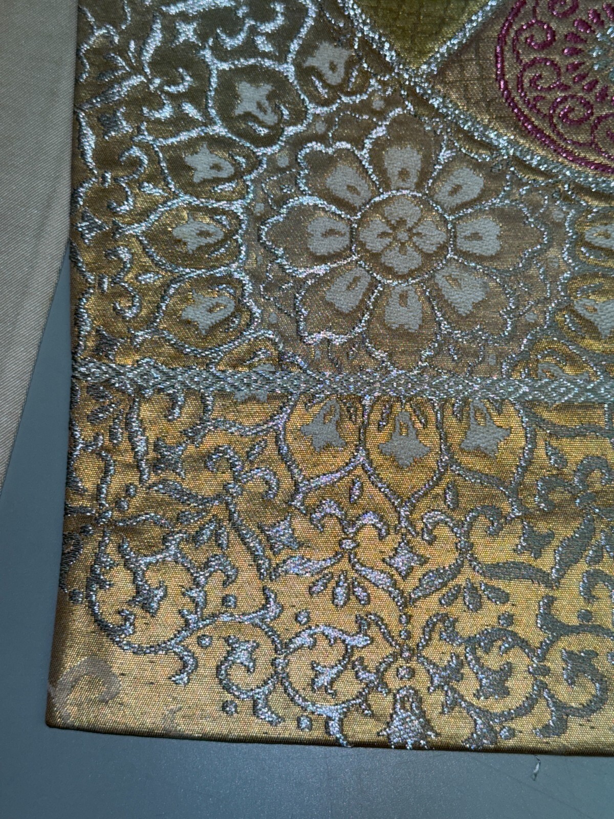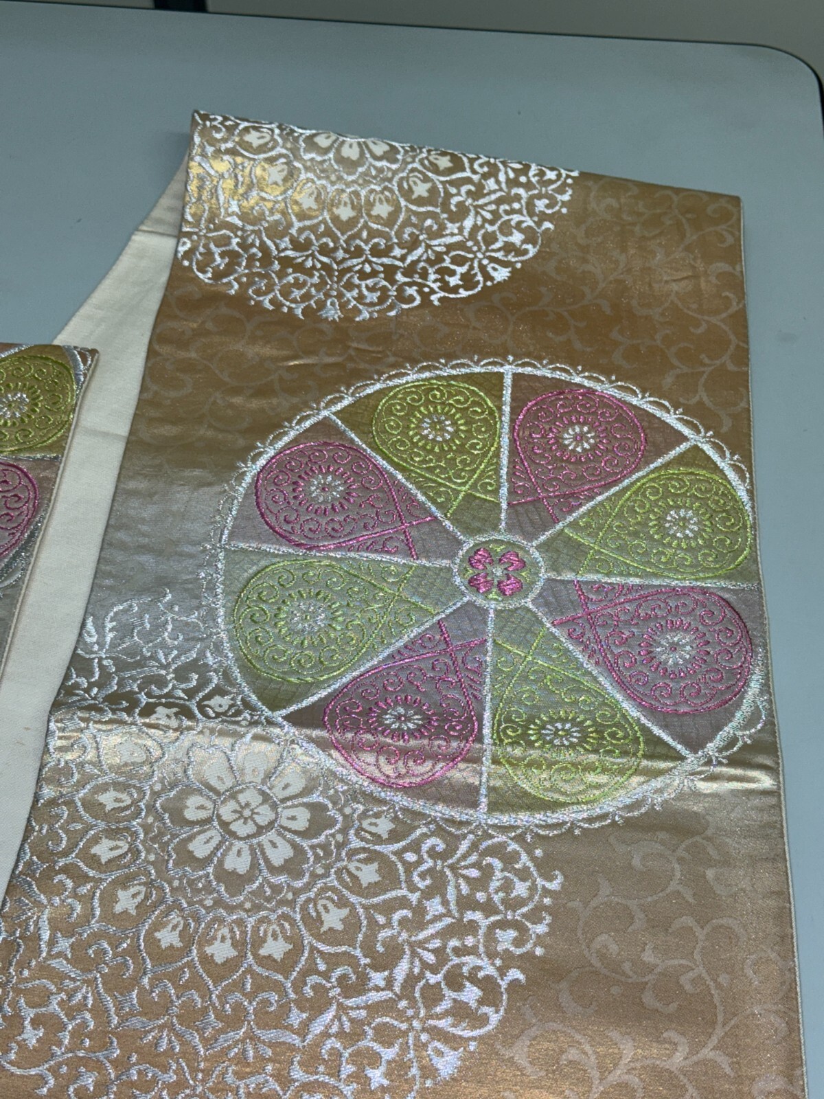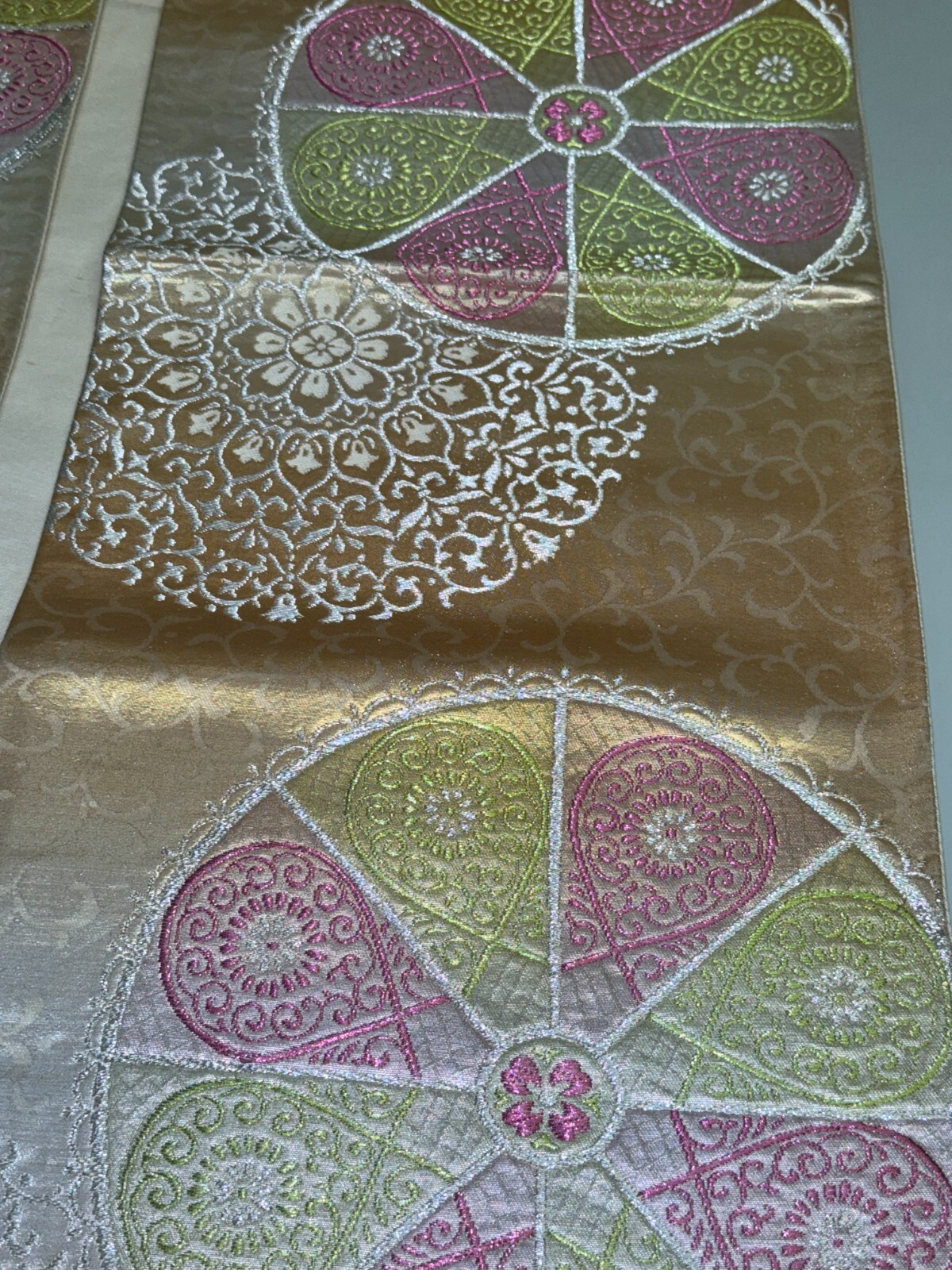 как выглядит Japanese Vintage Kimono Fukuro Obi silk Gold Embroidery Expensive 165.3x12.2in фото