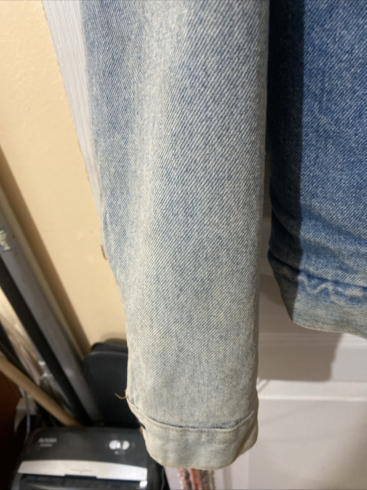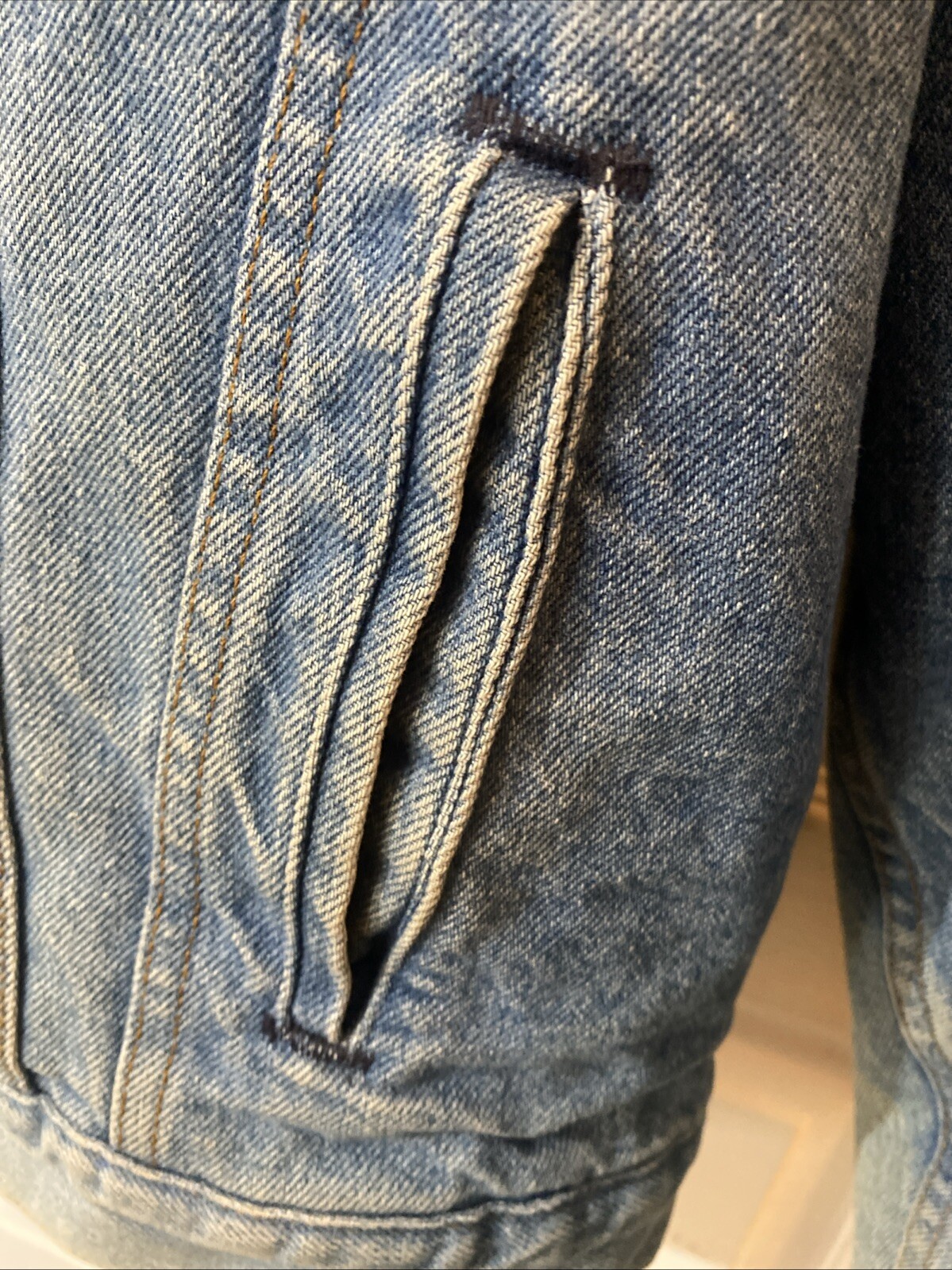 как выглядит Vintage Levi s Denim Jean Jacket Size 44 R Light Wash Sherpa Lined Snap Button фото