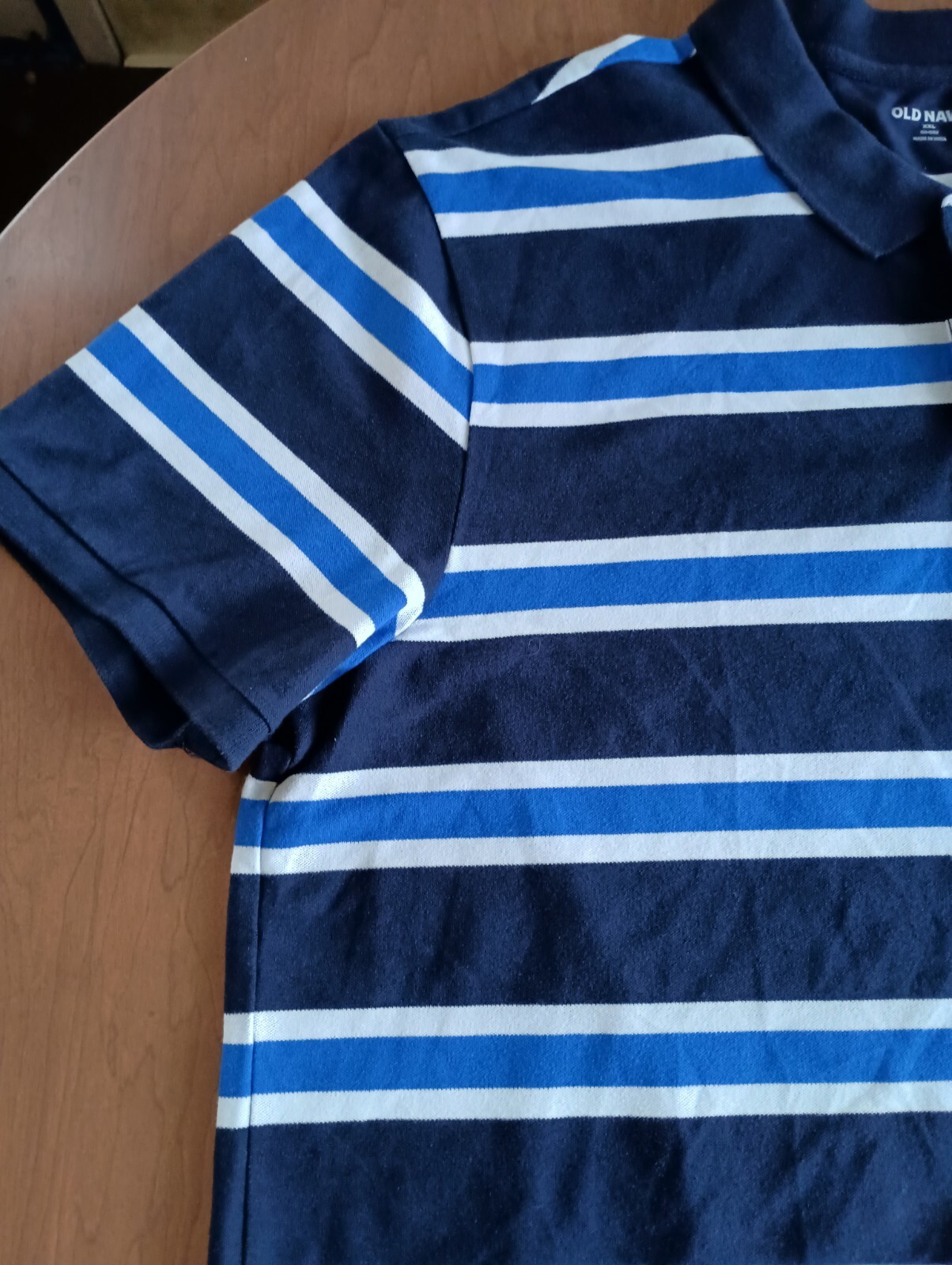 как выглядит Old Navy White Blue Navy Striped Mens Button Up Polo Size XXL фото
