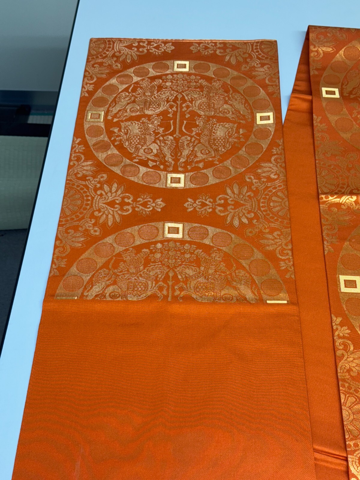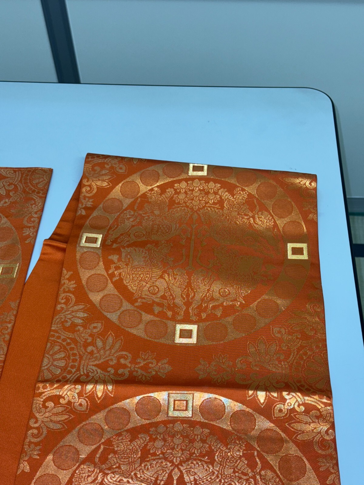 как выглядит Japanese Vintage Kimono Fukuro Obi silk orange Expensive Tradition 170x12.2in фото