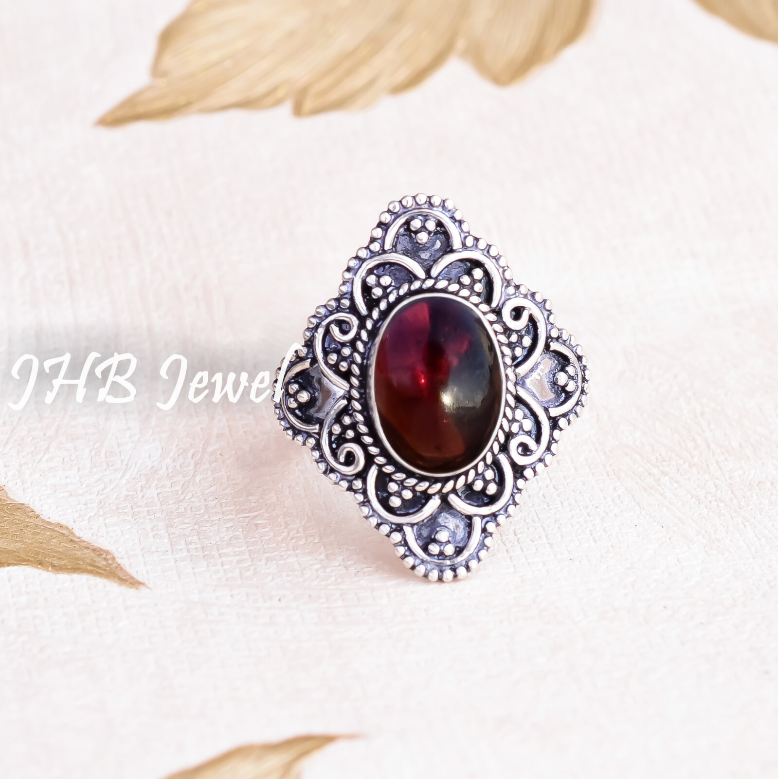 Mozambique Garnet Gemstone 925 Sterling Silver Engagement Ring Bridal Jewelry