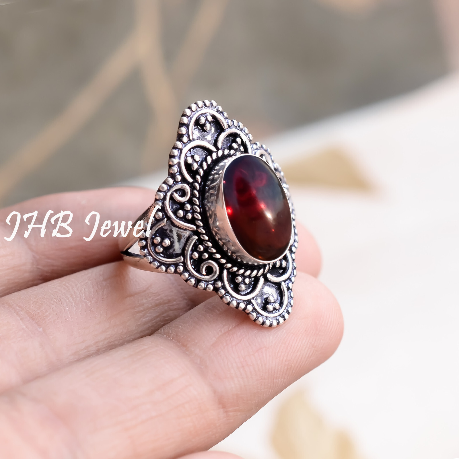 как выглядит Mozambique Garnet Gemstone 925 Sterling Silver Engagement Ring Bridal Jewelry фото