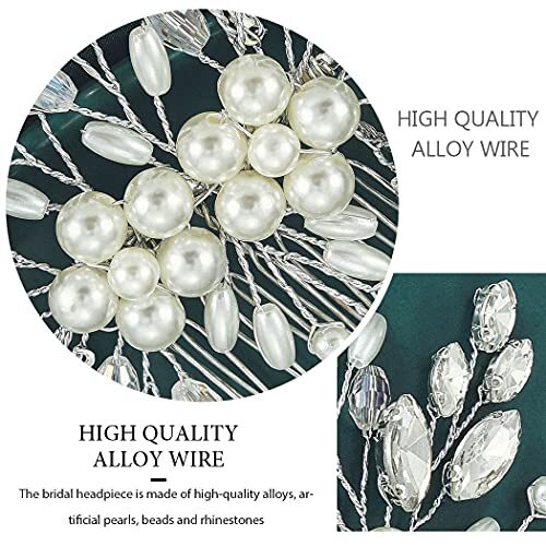 Yean Bride Leaf Bridal Hair Comb Pearl Wedding Hair Piece Rhinestone Silver
