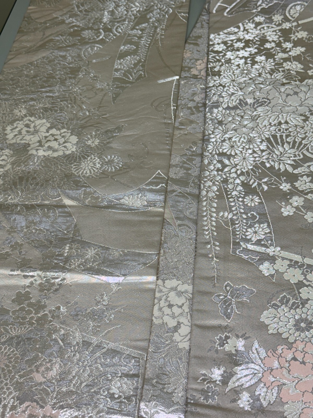 как выглядит Japanese Vintage Kimono Maru Obi silk Silver Embroidery Reversible 171.6x12.2in фото
