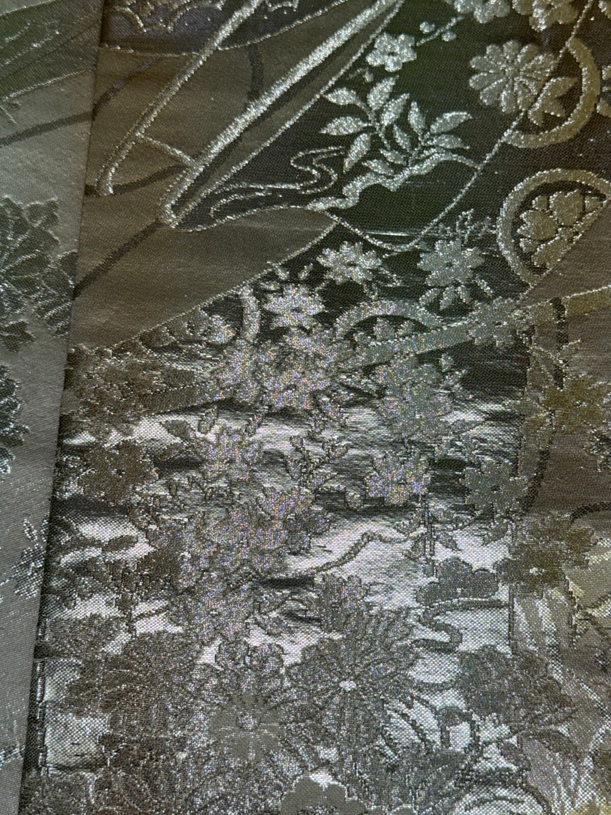 Japanese Vintage Kimono Maru Obi silk Silver Embroidery Reversible 171.6x12.2in