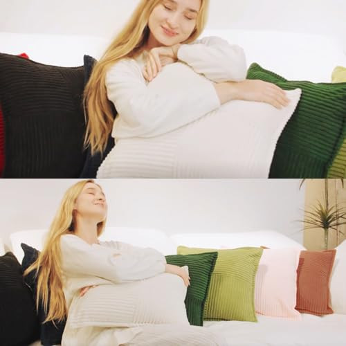 Corduroy Throw Pillow Covers Set of 2 Boho Decorative Cream White 16 16